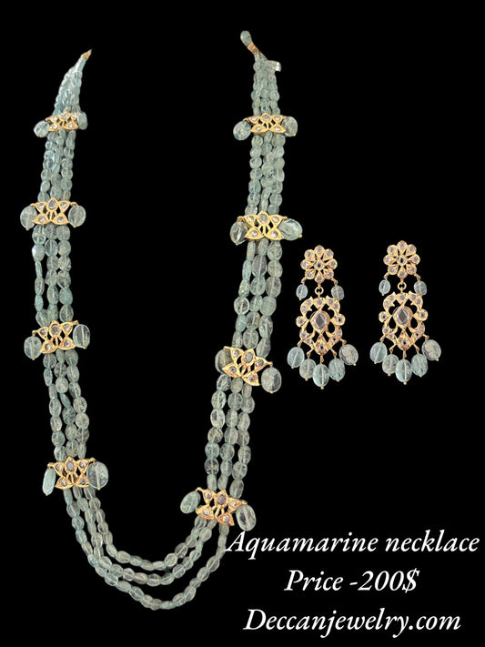 DLN63 aquamarine beads Rani haar with earrings ( READY TO SHIP )