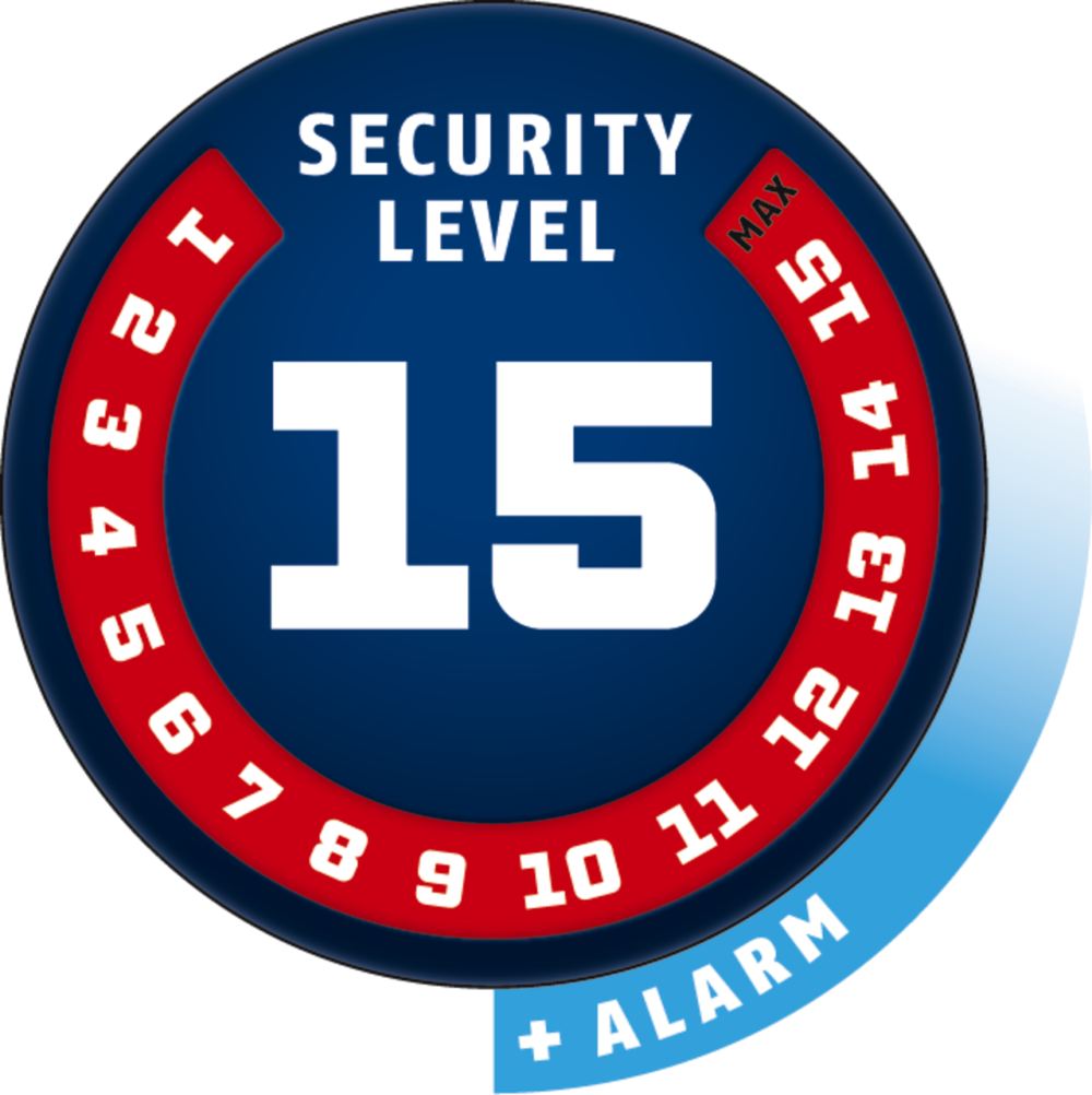 - Smart alarm – the lock only emits a short warning tone in the event of minor and brief vibrations, e.g. if a football bounces nearby