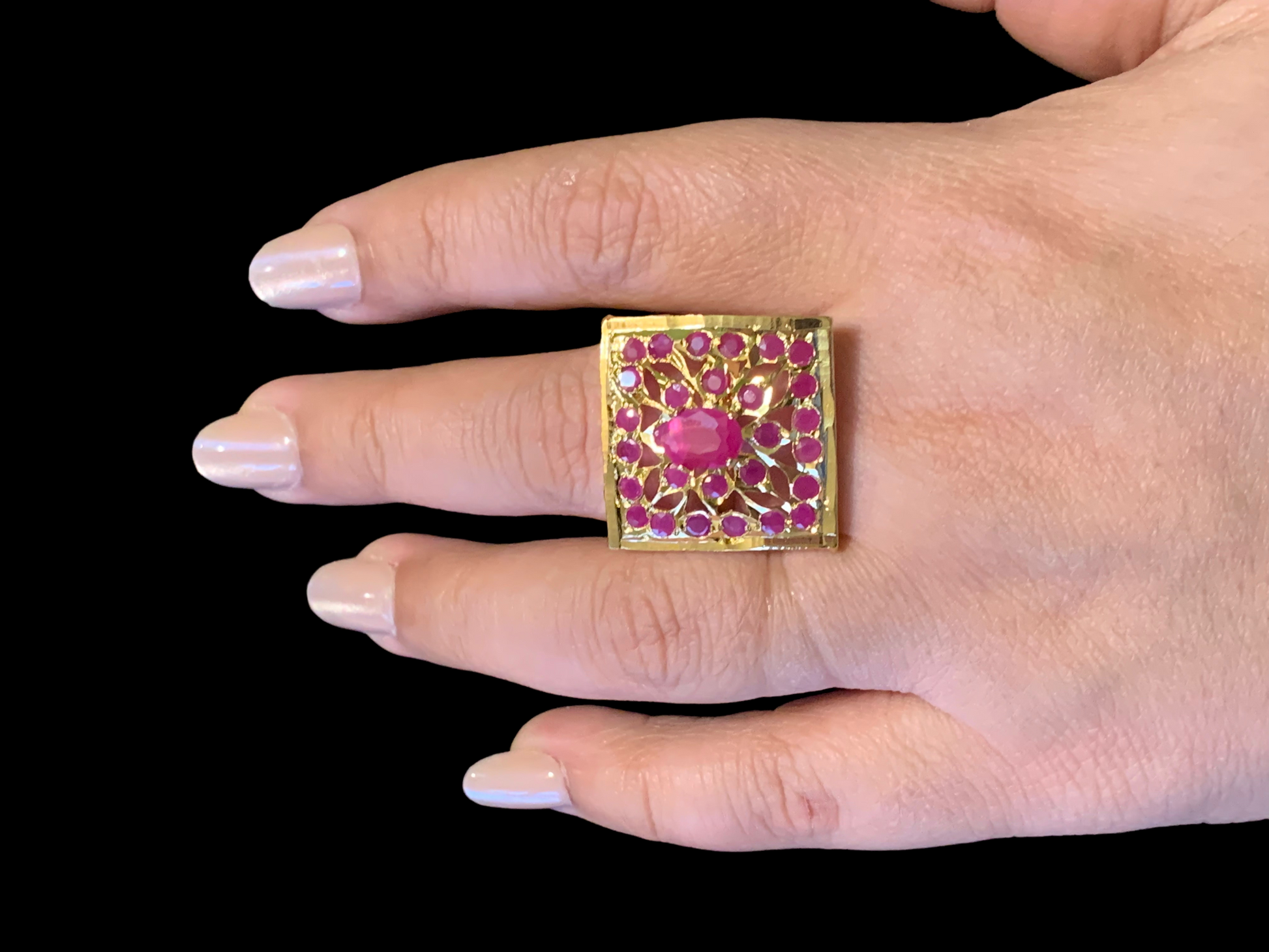 DJR83 Gold plated square ring- RUBY ( READY TO SHIP)