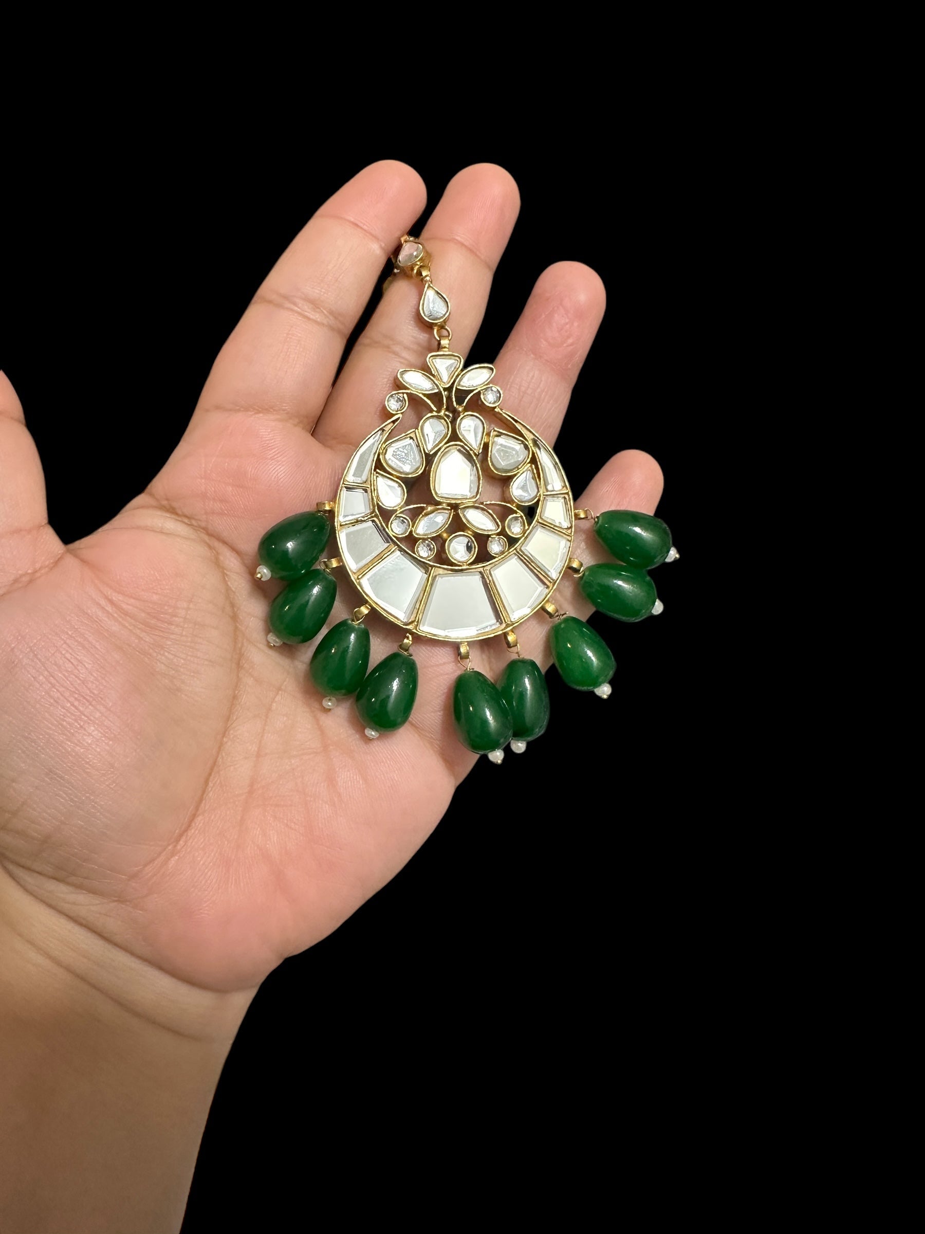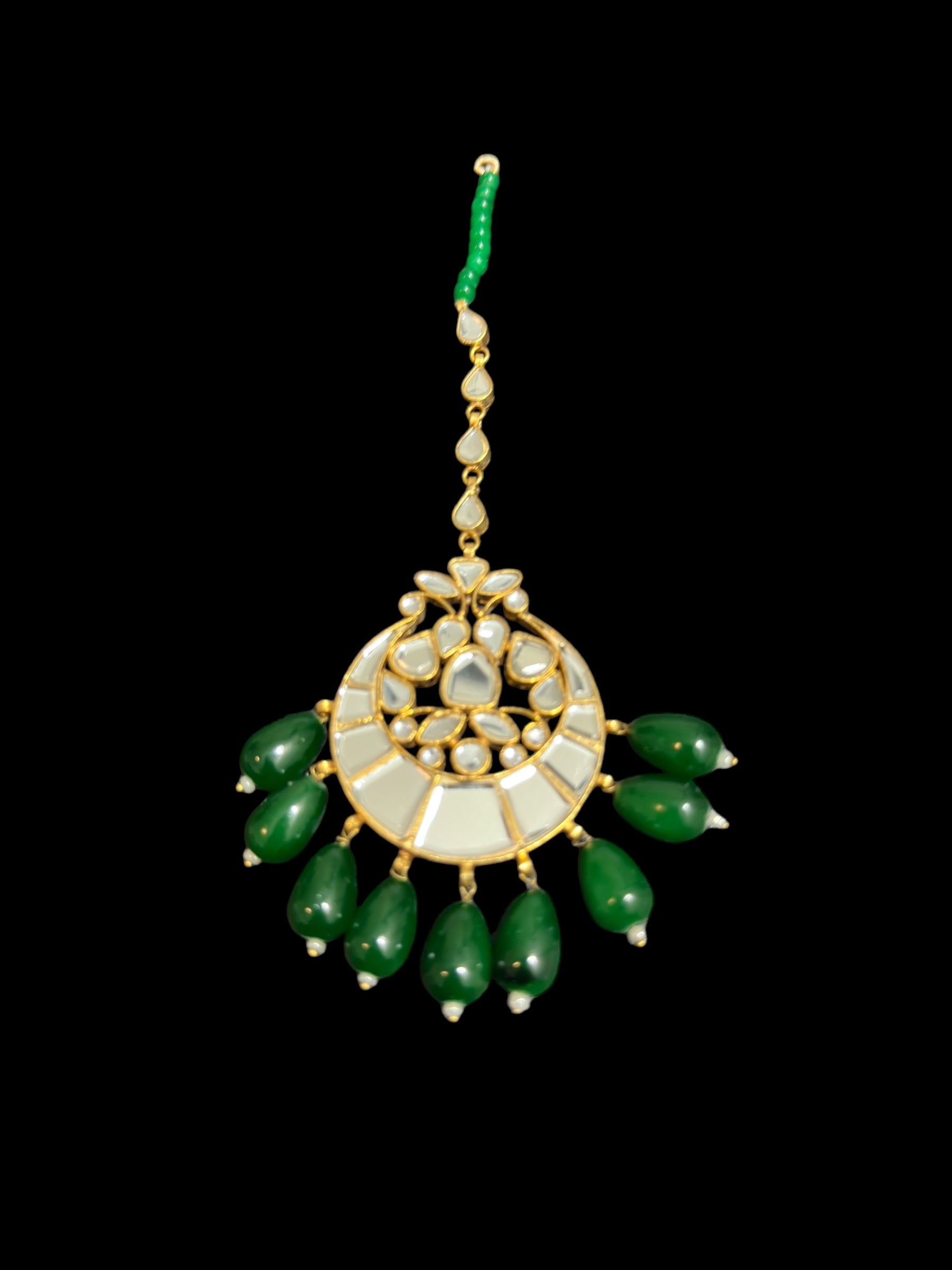 DJTK342 kundan tika - oversized with green beads ( READY TO SHIP )