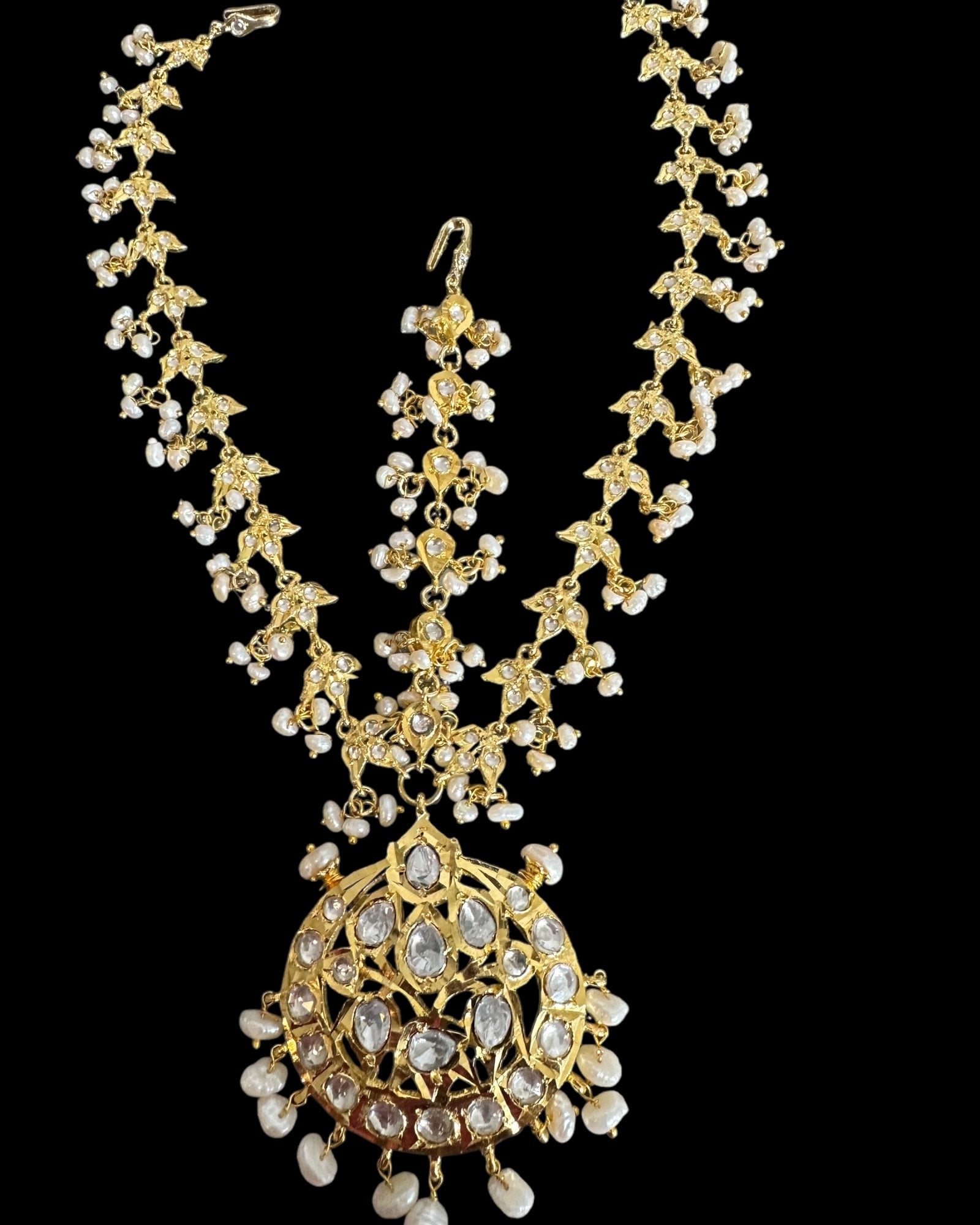 DJTK357 Neelofar moissanite Polki mathapatti with fresh water pearls ( READY TO SHIP)