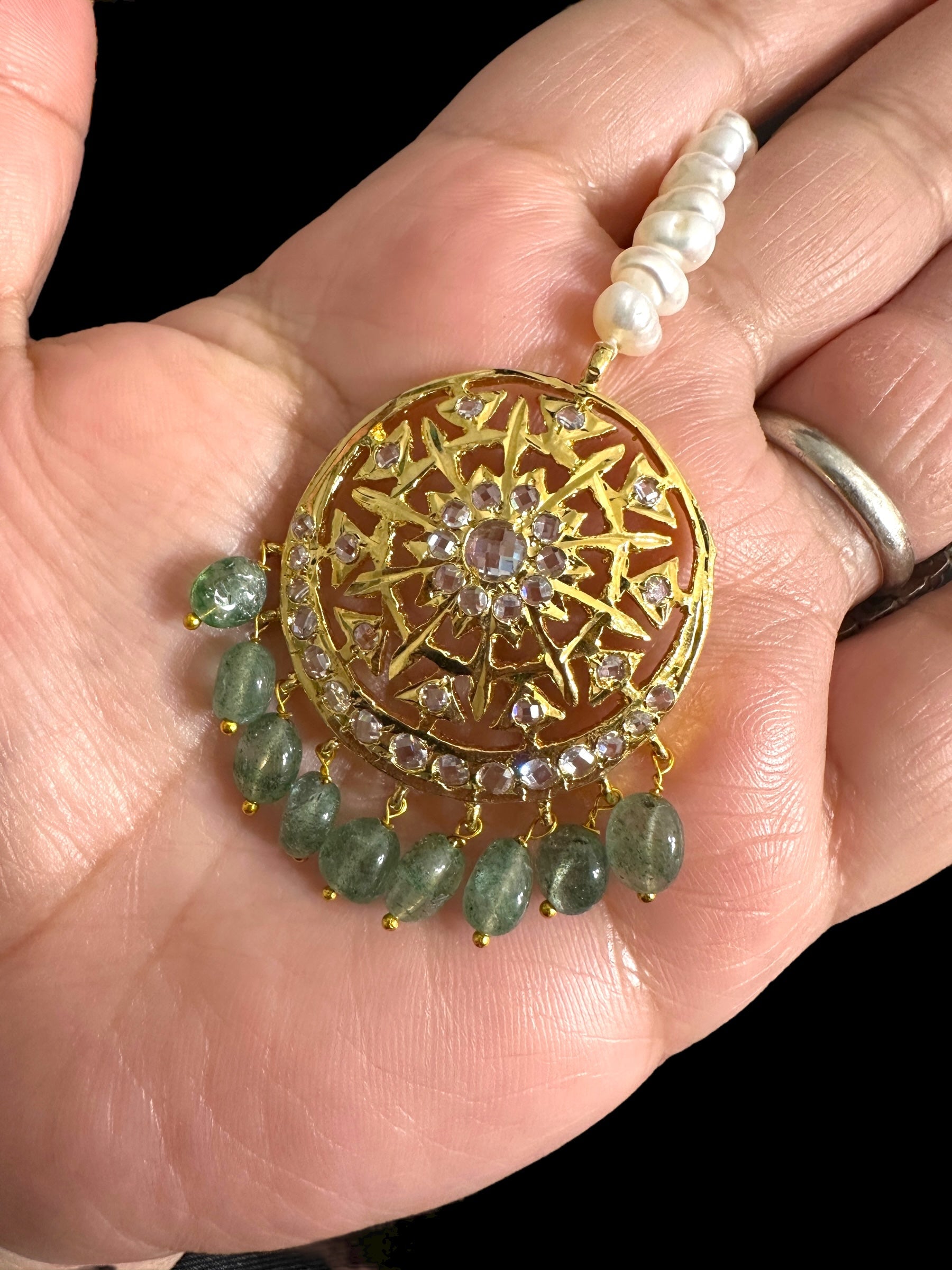 DJTK361 Fiza tika in fresh water pearls and emerald beads ( READY TO SHIP )