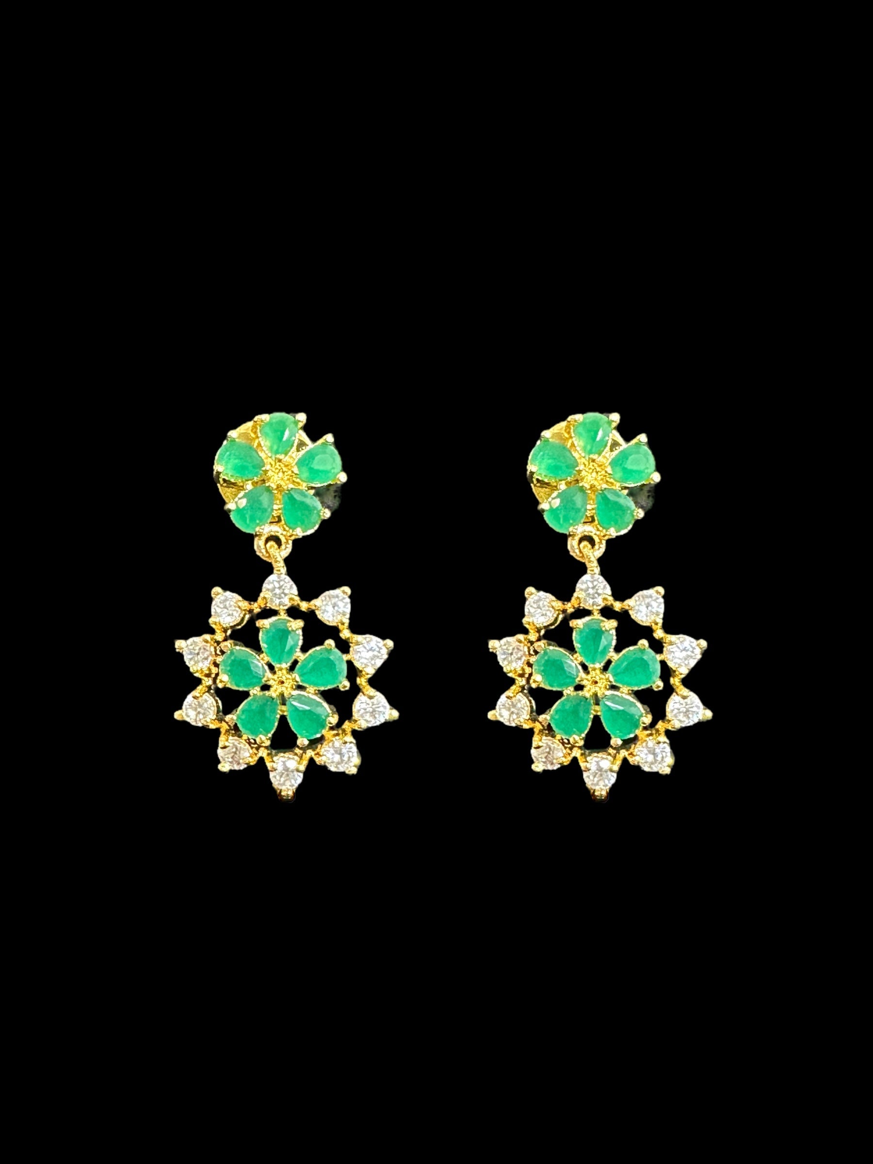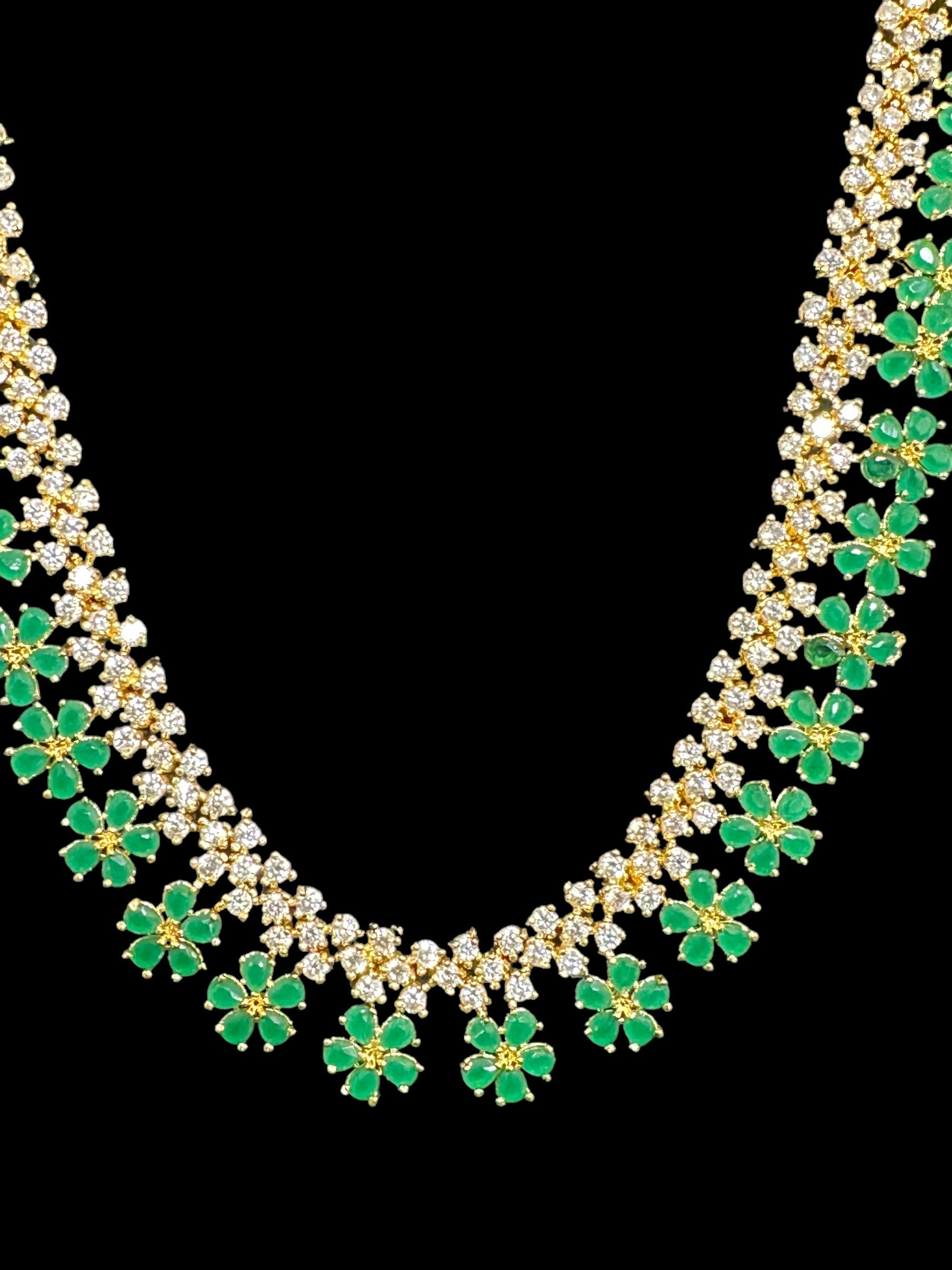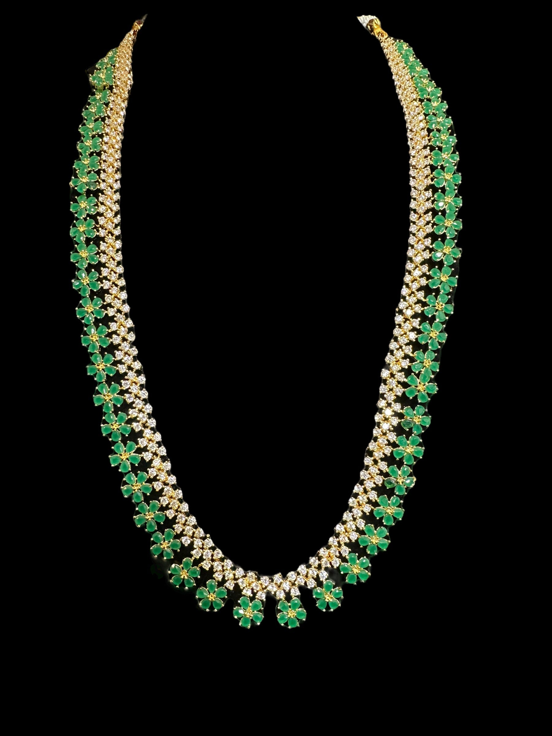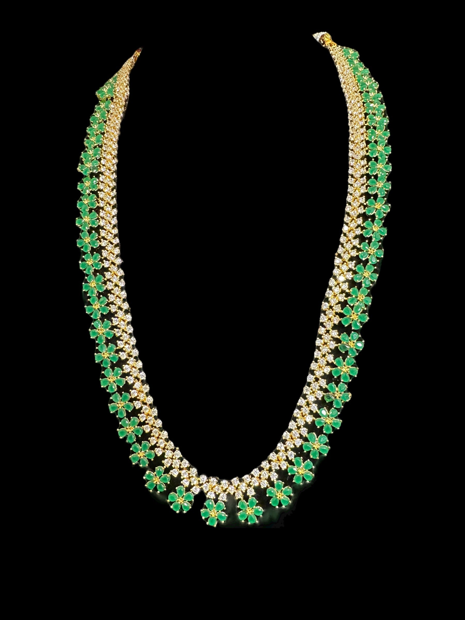 DLN39 Megha long set in cz stones - Green (READY TO SHIP)