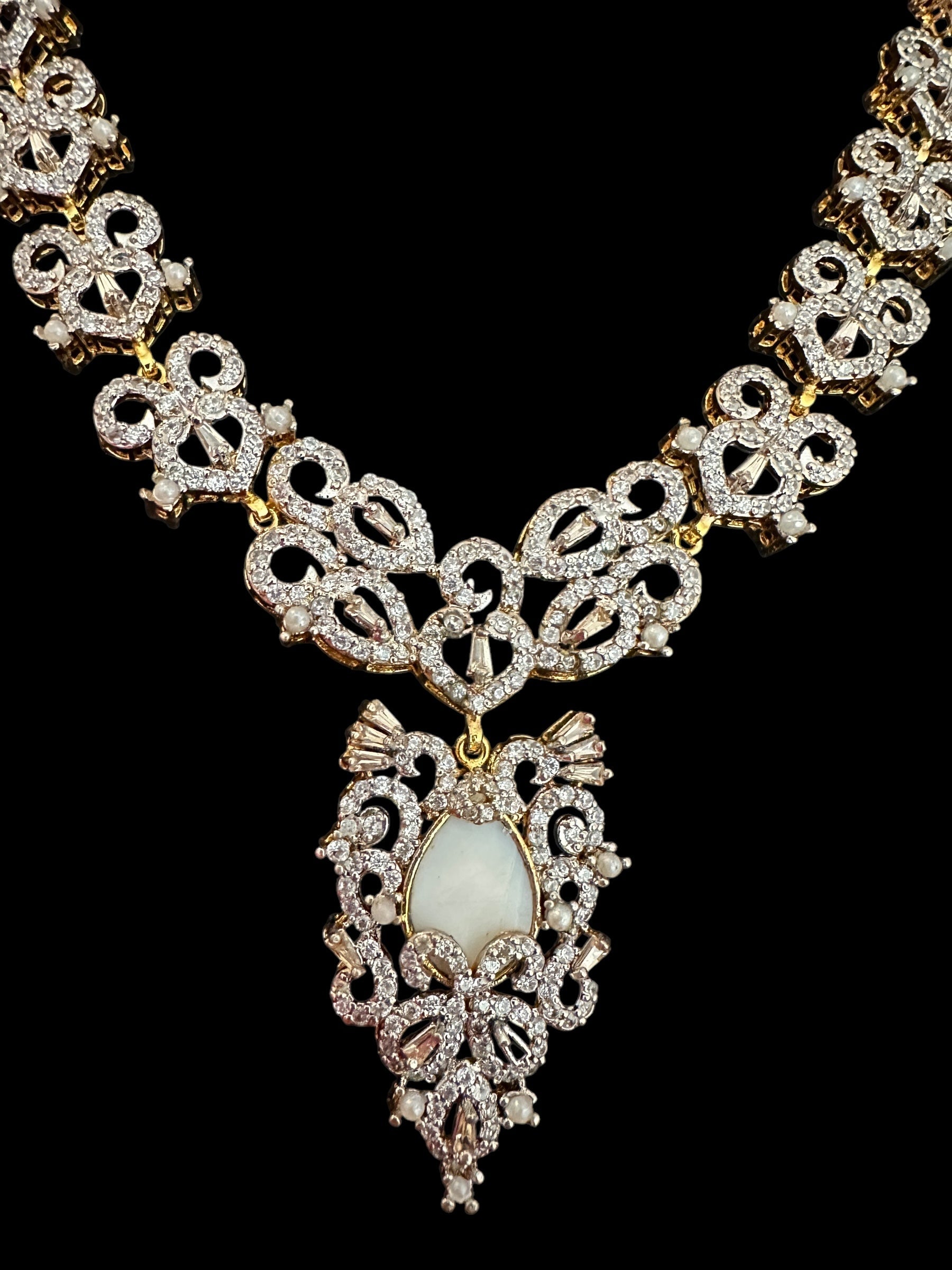 DNS158 Cz necklace with earrings in mother of pearl , gold plated ( READY TO SHIP )