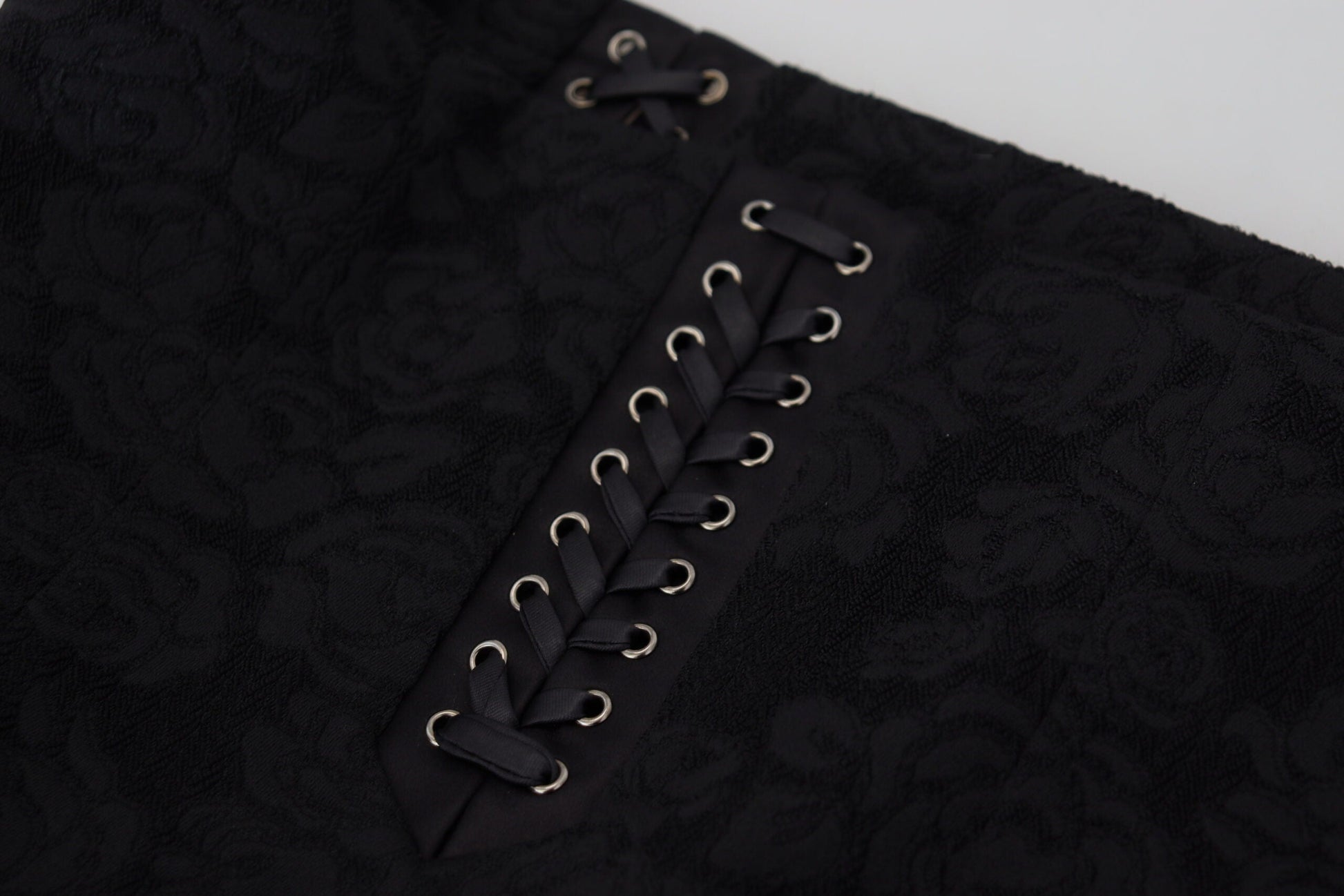 Dolce & Gabbana Black Brocade Mini Above Knee Pencil Skirt