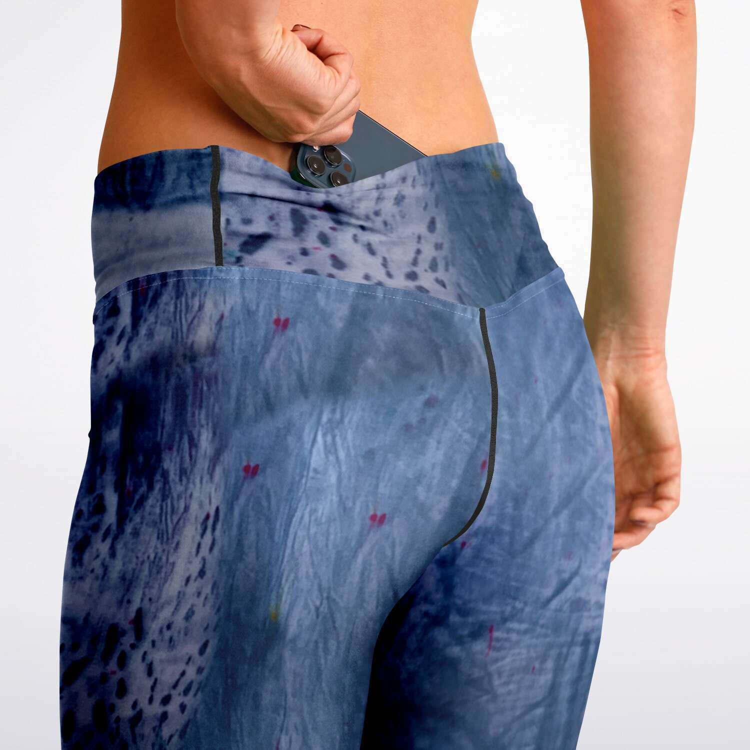 Brighten up your day with these high-rise yoga leggings featuring a beautiful hand-painted art print in deep purple and aqua colors. The four-way stretch fabric ensures maximum comfort while you're on the move. These leggings are perfect for both your brighter and shadow personas. So, add some color to your workout and feel amazing!