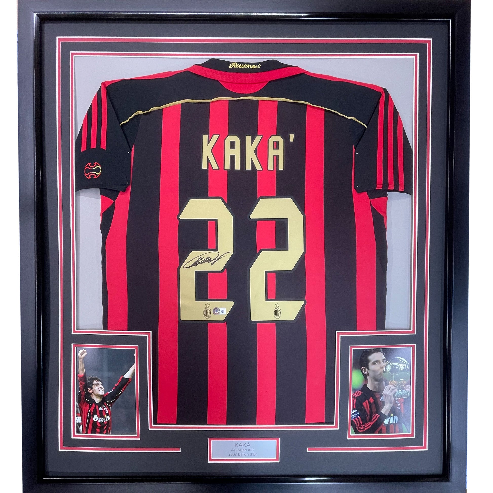 Framed Autographed/Signed Ricardo Kaka 35x39 AC Milan Black/Red Soccer Futbol Jersey Beckett BAS COA