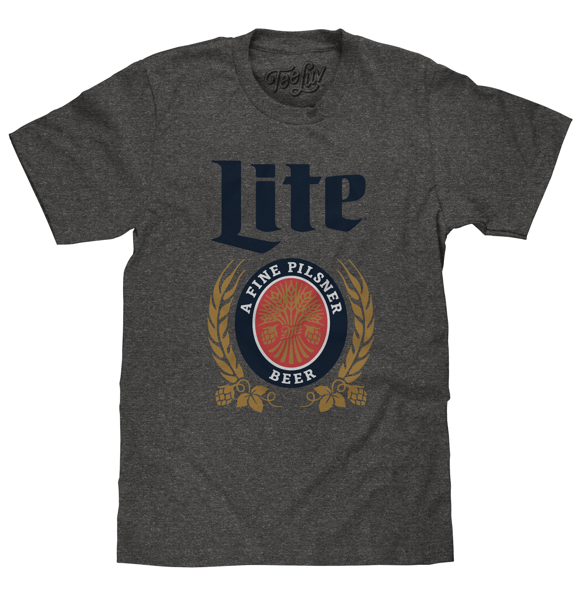 Some things never go out of style - like good friends, great times, and a cold Miller Lite. Inspired by the Original Light Beer, we've crafted this laid-back graphic tee featuring Miller's iconic "Lite" logo and the timeless "A Fine Pilsner Beer" crest. To complete the easygoing vibe of this Miller Lite shirt, we printed the design on a soft, short sleeve tee - perfect for keeping it casual at home or out on the town. This brewery logo t-shirt is available in crisp White (100% Cotton) or cool Graphite Heather (50% Cotton/50% Polyester) colors.