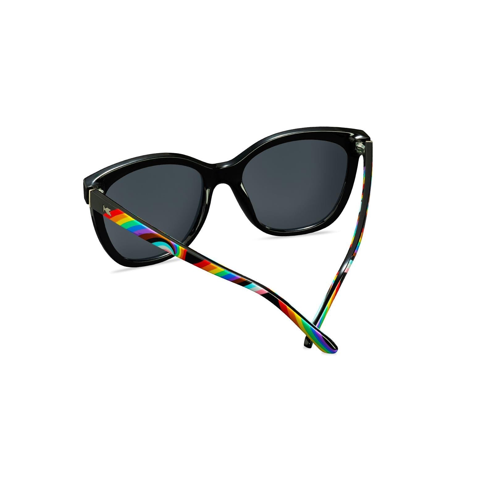 The Rainbow On My Parade Deja Views double down on colorful expression! A clean-cut glossy black front is accented by rainbow stripes at the bottom, while a Progress Pride Flag-inspired swirl enthusiastically paints each arm in full color. Polarized rainbow lenses and silver K-logos finish this pair for a look that’s just as full of fun as you are.