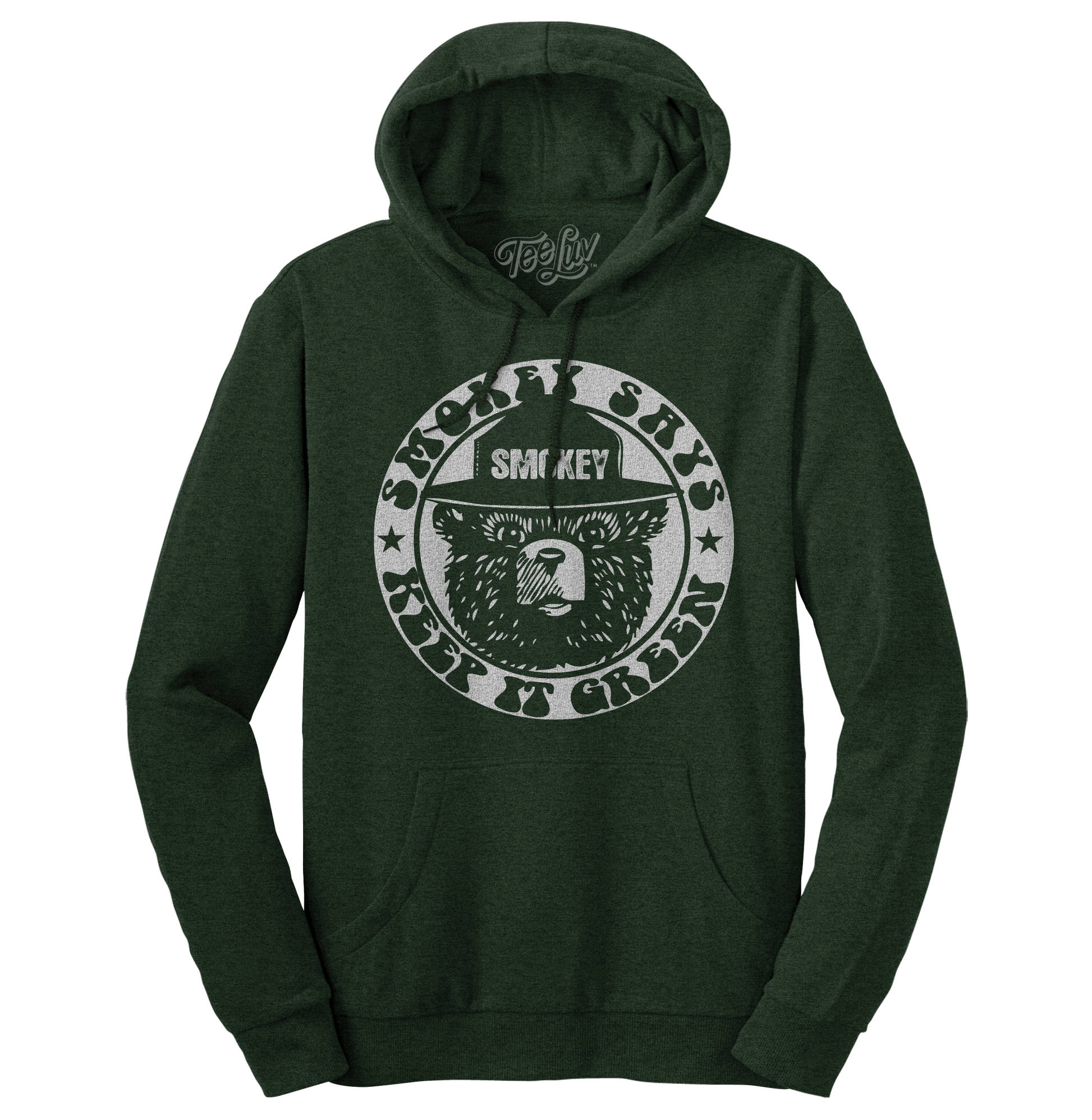 The best selling Smokey the Bear design is now on a Forest Green pull over hoodie! Featuring a drawstring hood and a front pocket, this hoodie is perfect for ultimate lounging on those chilly fall days!