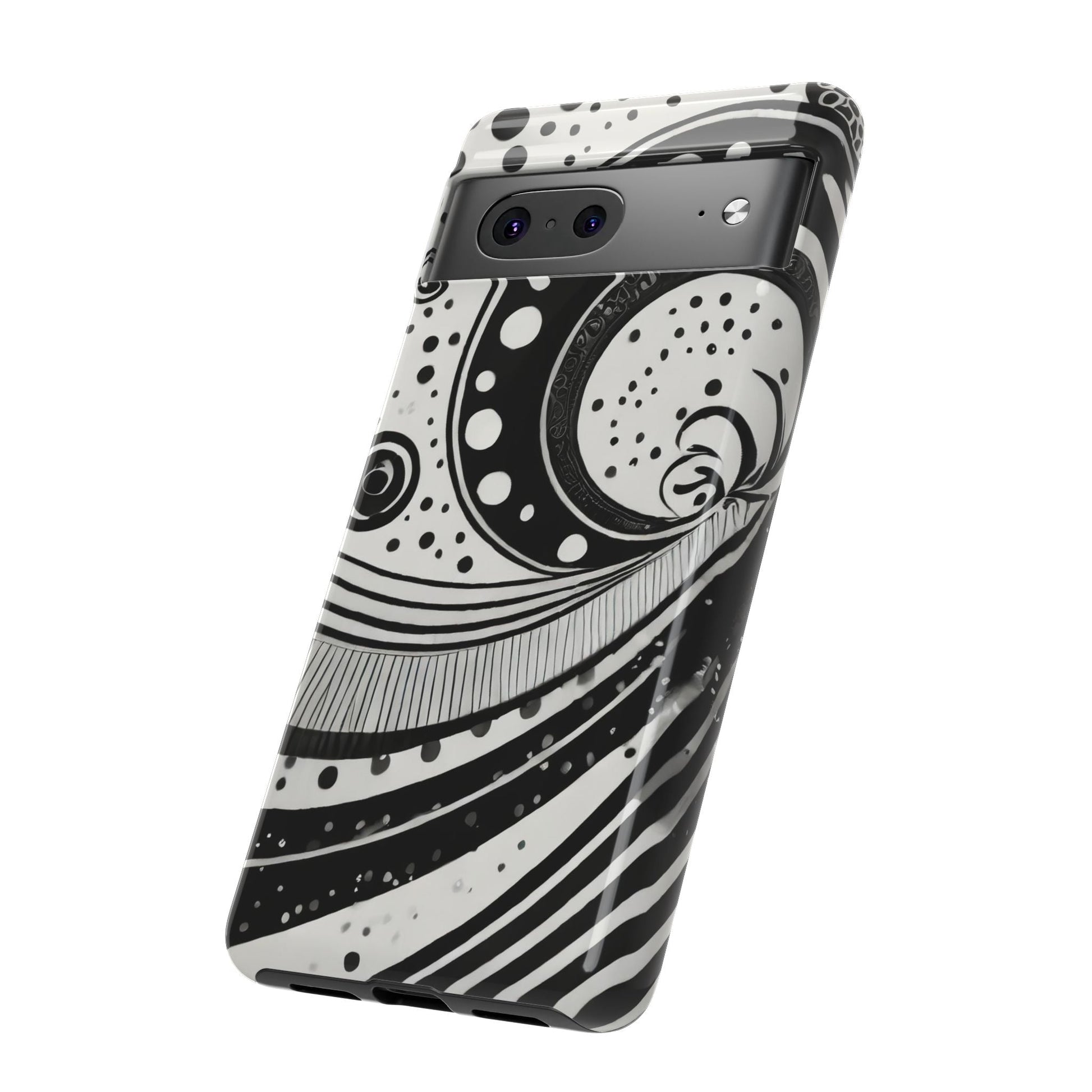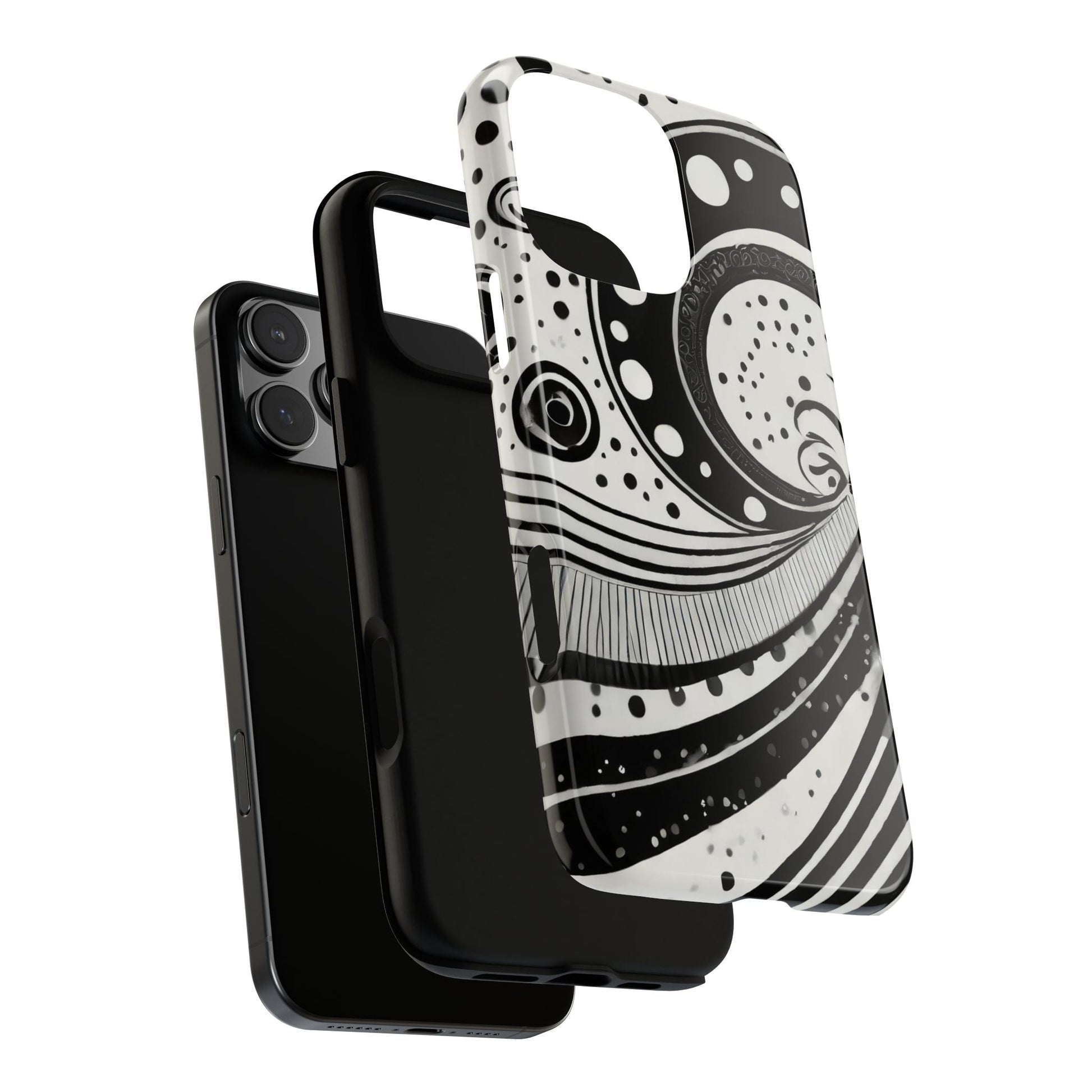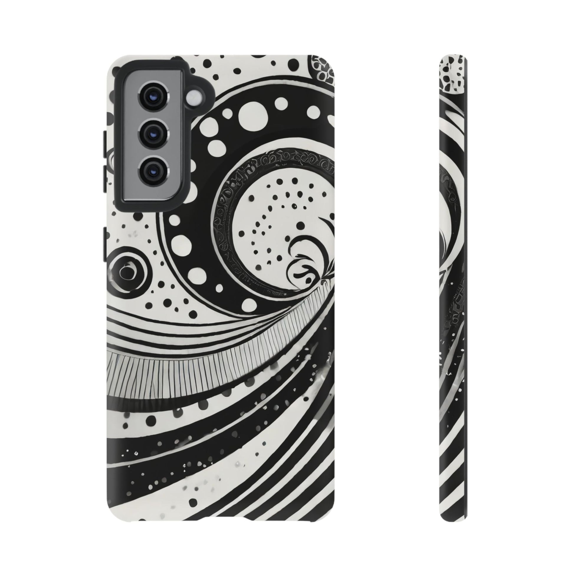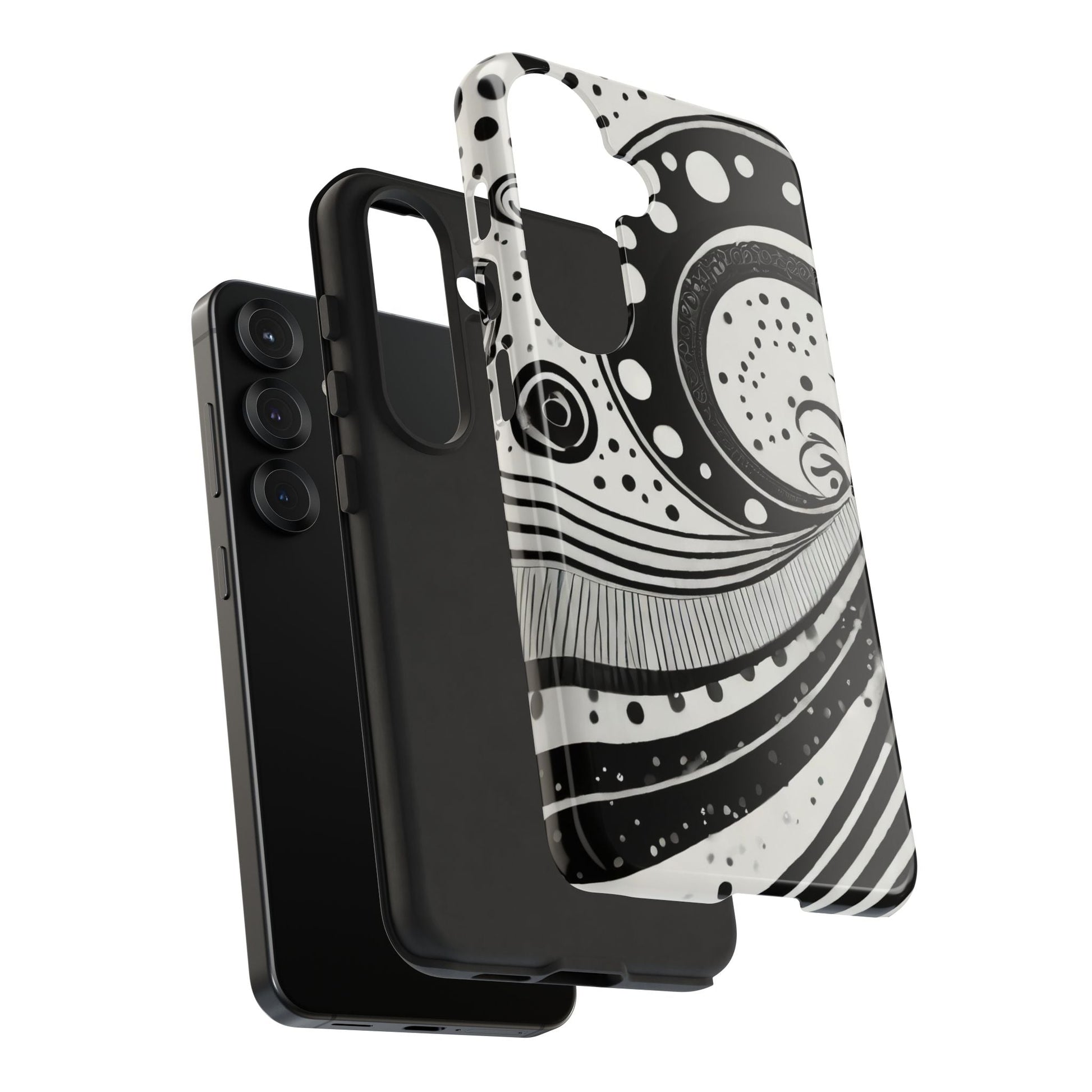 Upgrade your phone's appearance and durability with our sophisticated Tough Cases. Featuring an elegant black and white swirl design, these cases exude a fashionable vibe that enhances any individual style. As a must-have for busy individuals, students, and frequent travelers, these Tough Cases provide reliable protection against drops and impacts while maintaining a sleek aesthetic. They are suitable for everyday use and special occasions, including holidays, birthdays, and as considerate presents for tech enthusiasts. Choose our sturdy and stylish Tough Cases to elevate your phone's look and safeguard it at the same time..