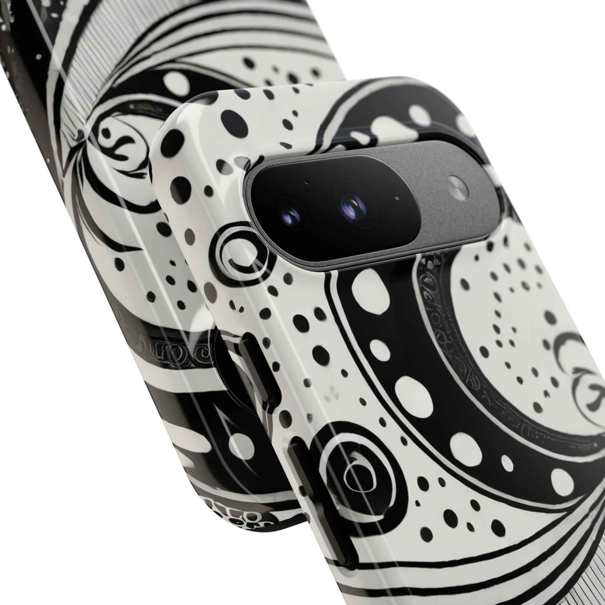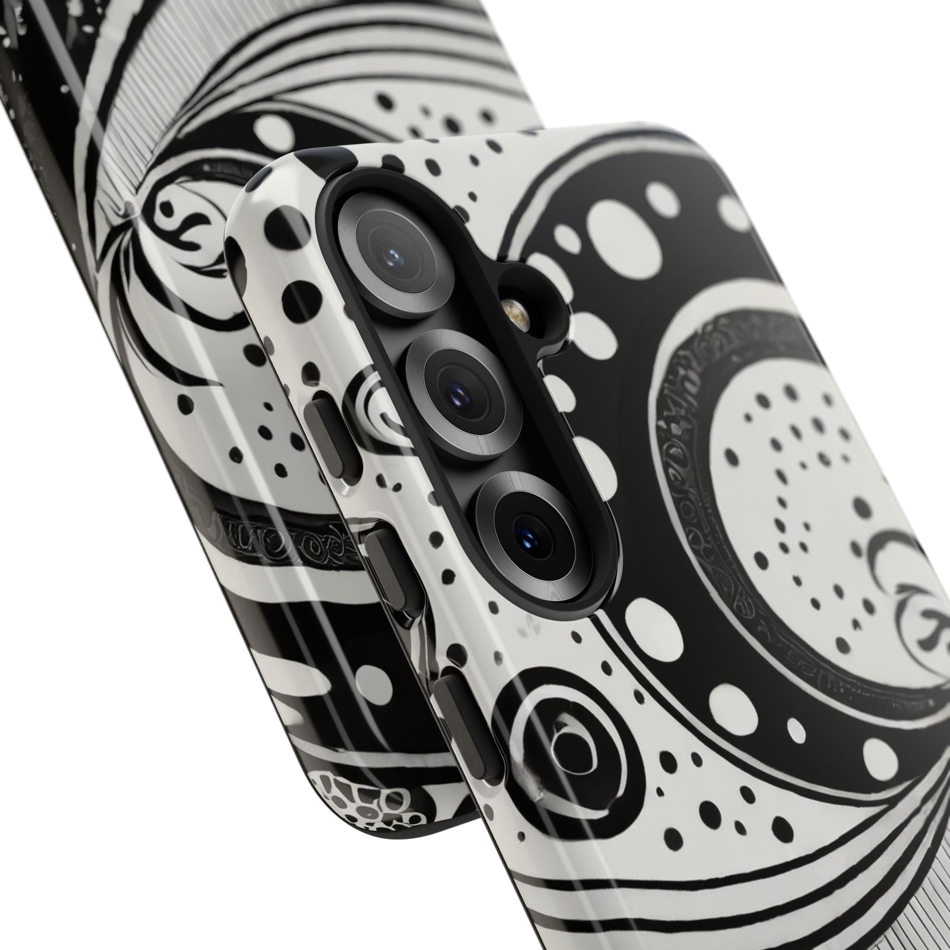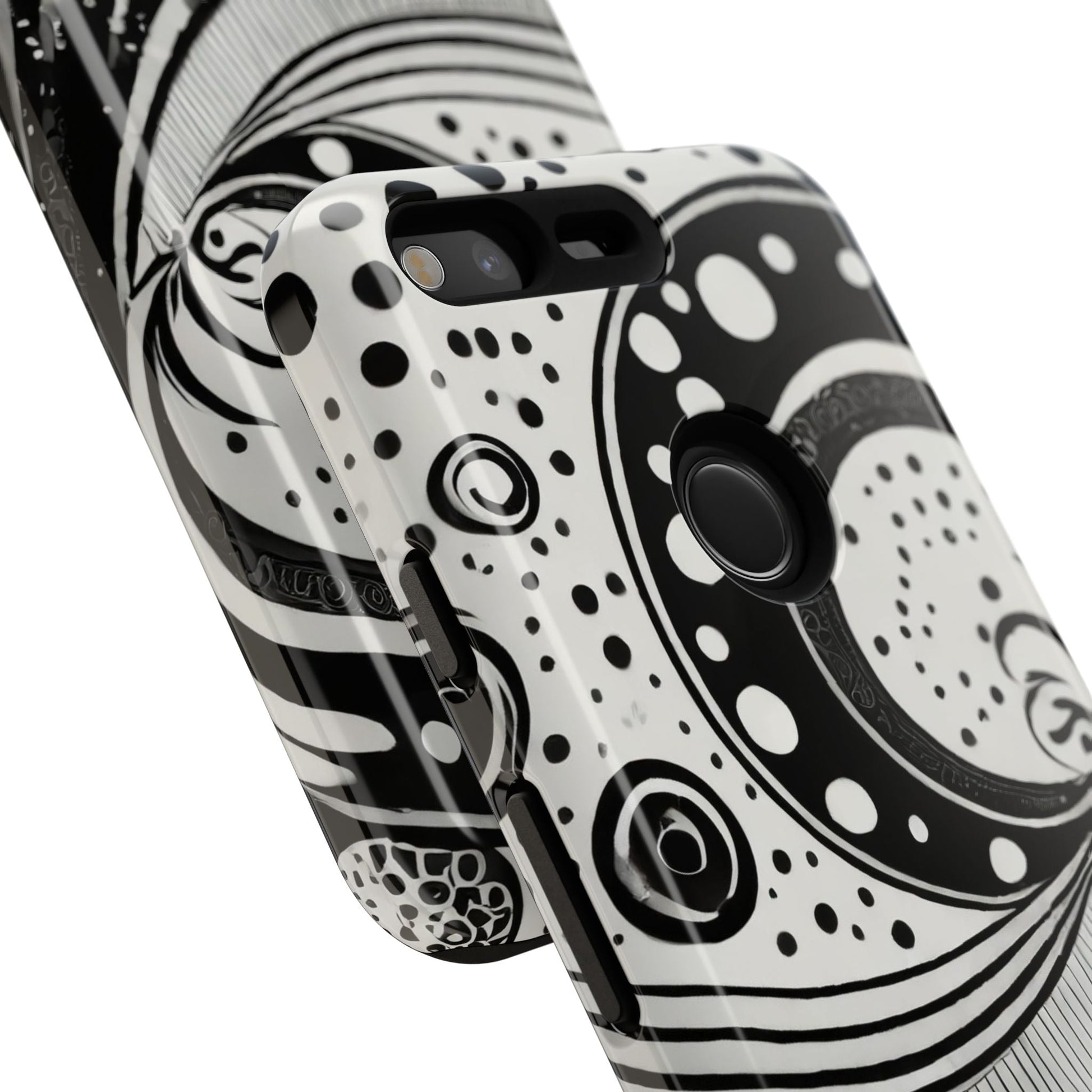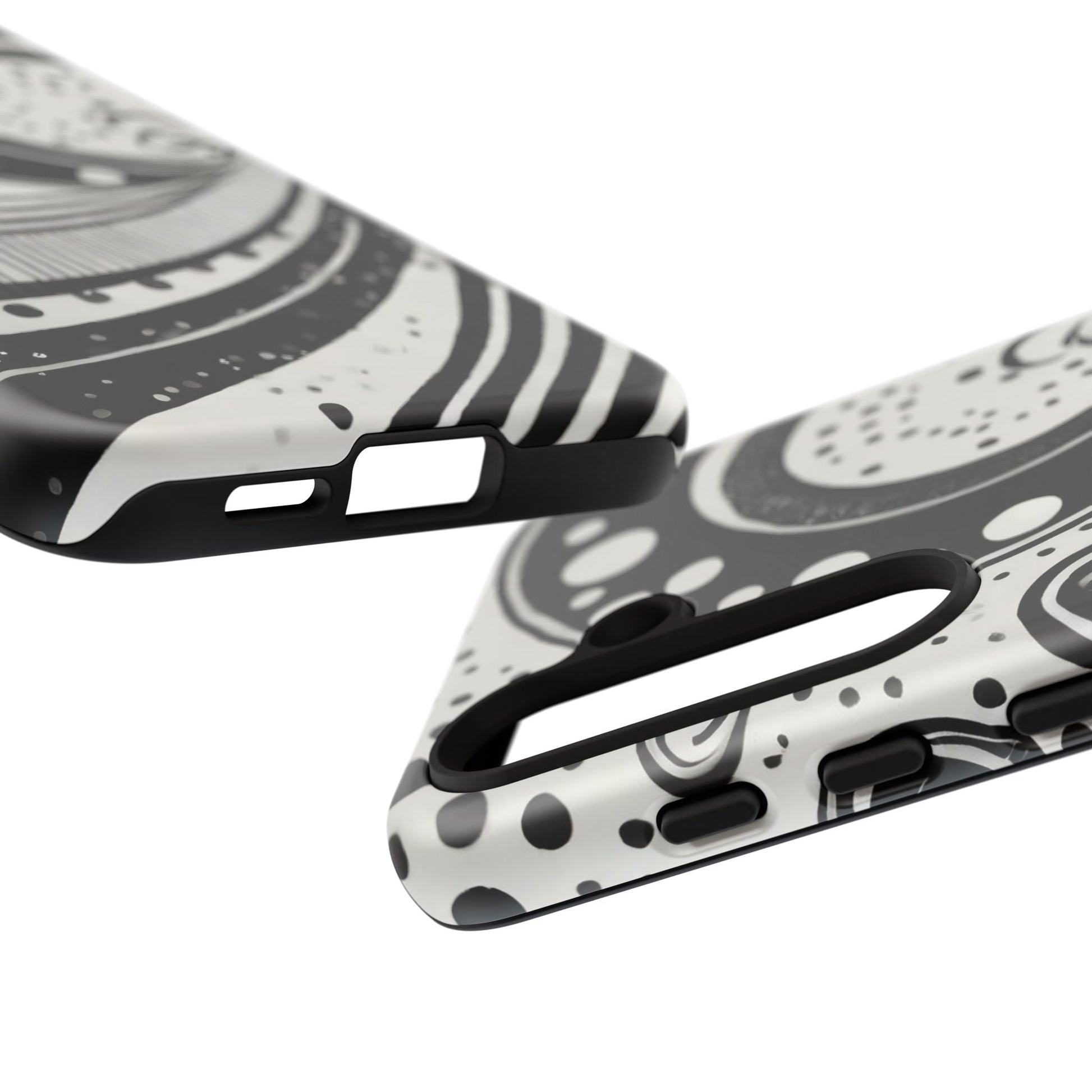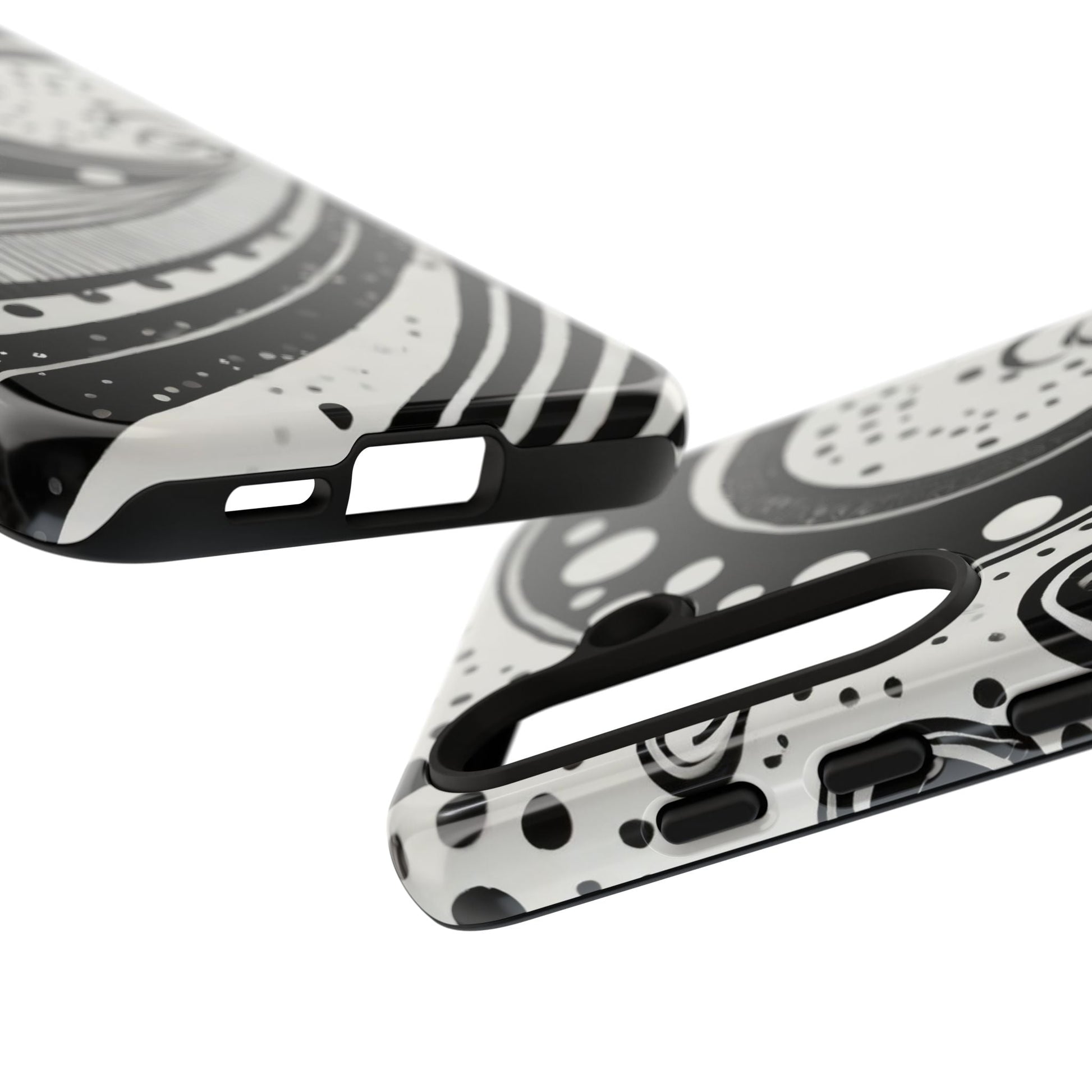 Upgrade your phone's appearance and durability with our sophisticated Tough Cases. Featuring an elegant black and white swirl design, these cases exude a fashionable vibe that enhances any individual style. As a must-have for busy individuals, students, and frequent travelers, these Tough Cases provide reliable protection against drops and impacts while maintaining a sleek aesthetic. They are suitable for everyday use and special occasions, including holidays, birthdays, and as considerate presents for tech enthusiasts. Choose our sturdy and stylish Tough Cases to elevate your phone's look and safeguard it at the same time..