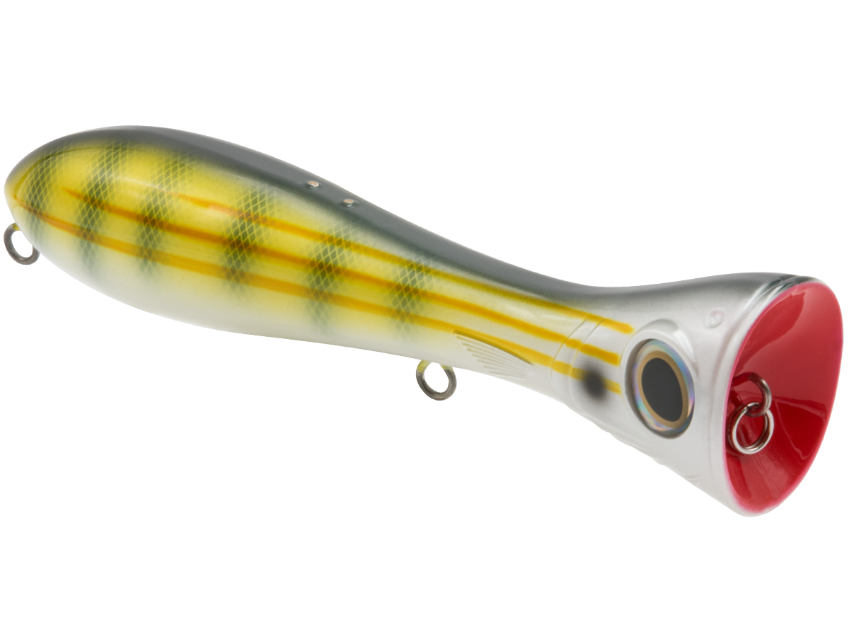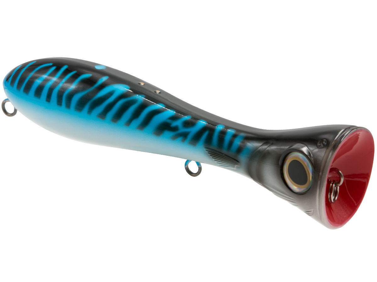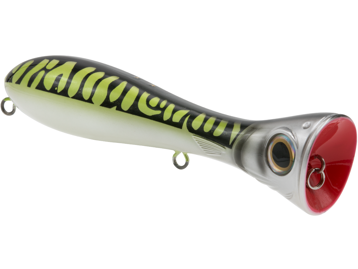 There's nothing subtle about the topwater assault of dorado, wahoo, tarpon, redfish or striped bass, and the POPPA 6 plays right along. This popper was designed for B-I-G popping action and maximum surface attraction for the most aggressive saltwater predators. The Poppa's fish-attracting power starts with the exaggerated, deeply scooped face, which creates a violent surface concussion (pop) that imitates an injured baitfish and catches the attention of nearby predators. Add to that the undeniable boost of EBS TechnologyTM, which emits the actual biological sounds of the baitfish (pinfish, mullet, sardine, etc.) that predatory fish are programmed to feed on, and you'll have a popper that draws inshore species from quadruple the distance of a traditional popper! Built with heavy-duty components and wire-through construction, the Poppa 6 will stand up to any abuse these predators dish out.