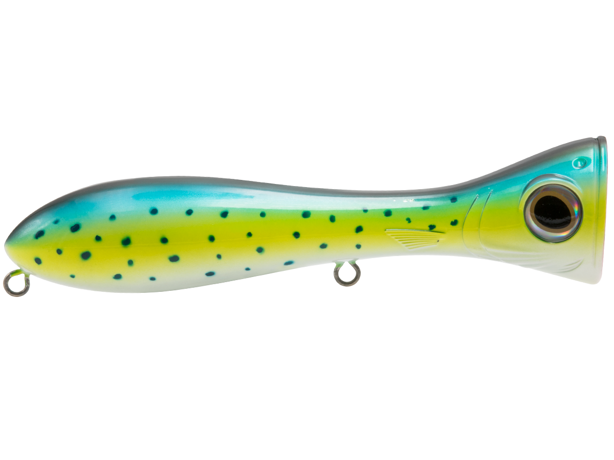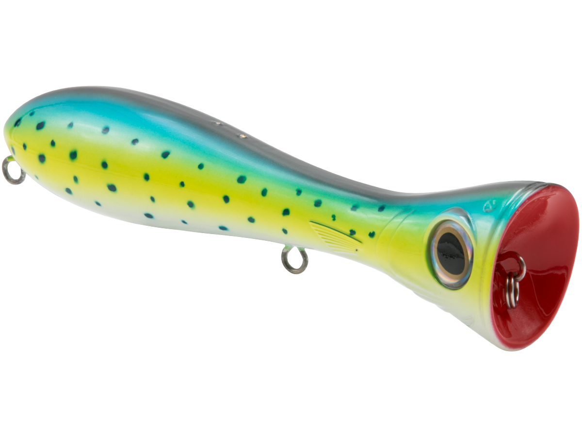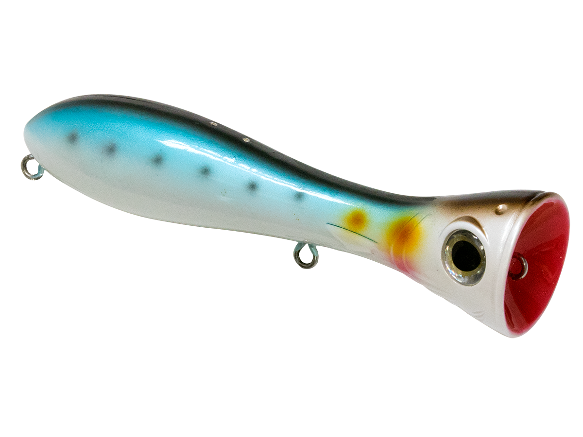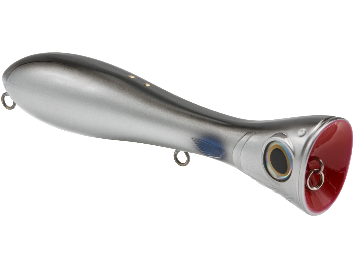There's nothing subtle about the topwater assault of dorado, wahoo, tarpon, redfish or striped bass, and the POPPA 6 plays right along. This popper was designed for B-I-G popping action and maximum surface attraction for the most aggressive saltwater predators. The Poppa's fish-attracting power starts with the exaggerated, deeply scooped face, which creates a violent surface concussion (pop) that imitates an injured baitfish and catches the attention of nearby predators. Add to that the undeniable boost of EBS TechnologyTM, which emits the actual biological sounds of the baitfish (pinfish, mullet, sardine, etc.) that predatory fish are programmed to feed on, and you'll have a popper that draws inshore species from quadruple the distance of a traditional popper! Built with heavy-duty components and wire-through construction, the Poppa 6 will stand up to any abuse these predators dish out.