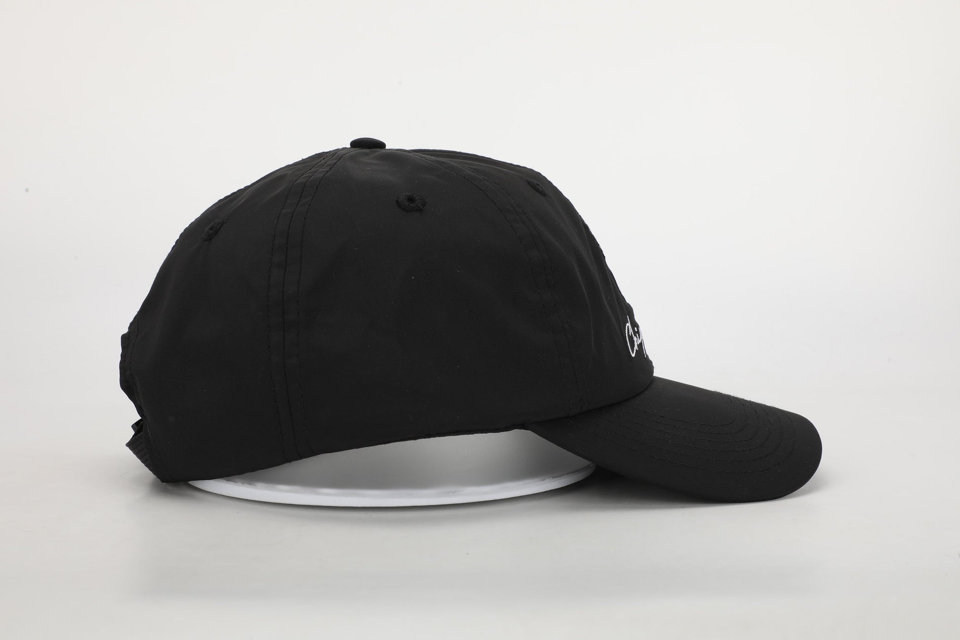 5 panel hat in color black! Adjustable back made to fit all sizes! Made out of 90% polyester and 10% spandex material.