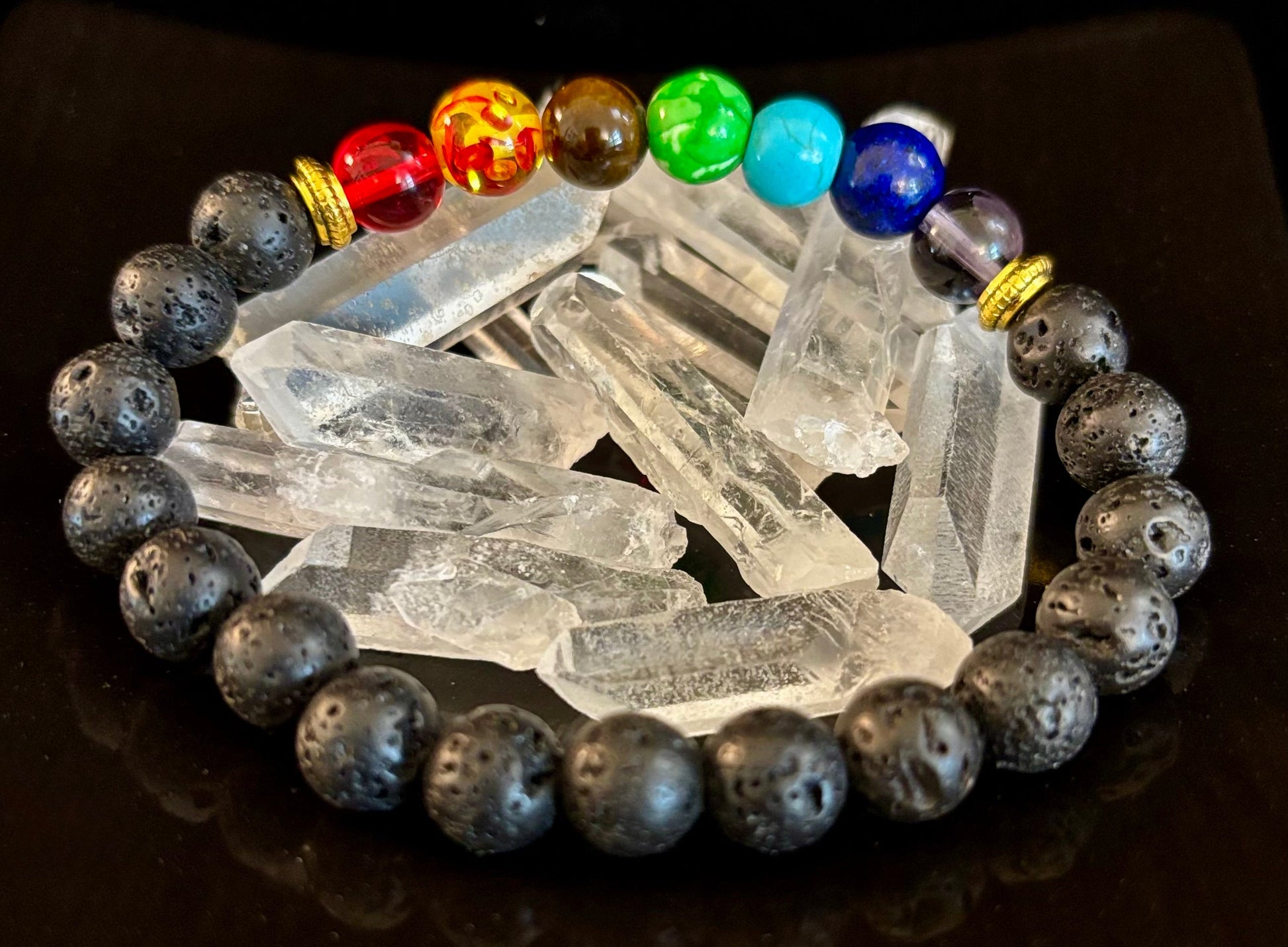Chakra Beaded Bracelet – Volcanic Lava Rock & Natural Healing Stones