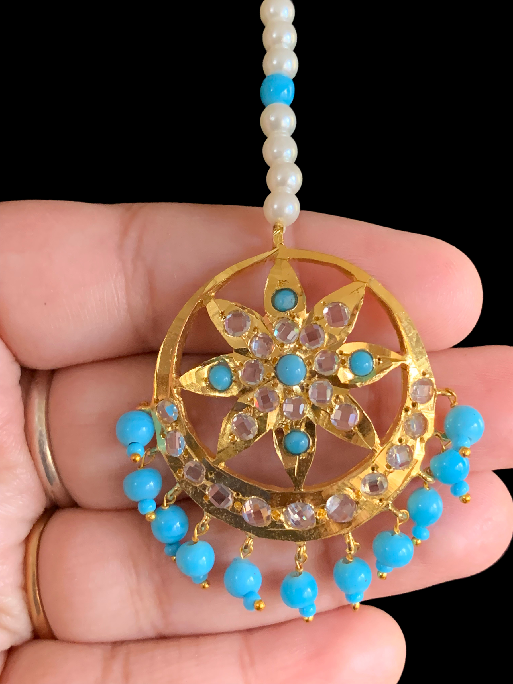 DJTK160 Akbari tika in turquoise or Feroza beads (READY TO SHIP)