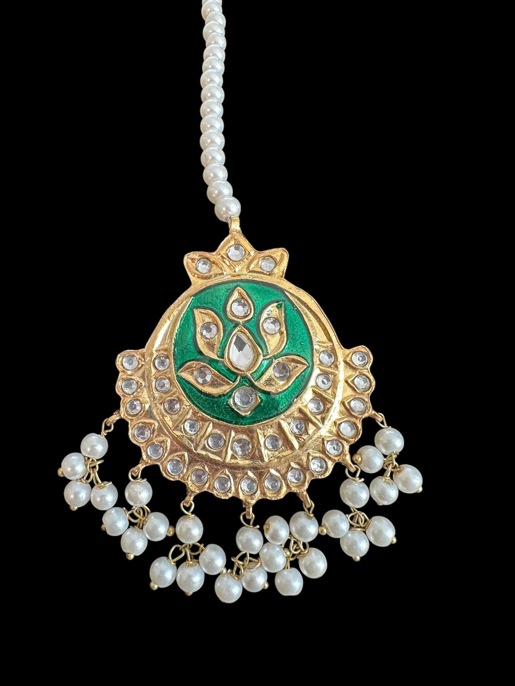 DJTK309 kundan and meenakari tika - green ( READY TO SHIP )