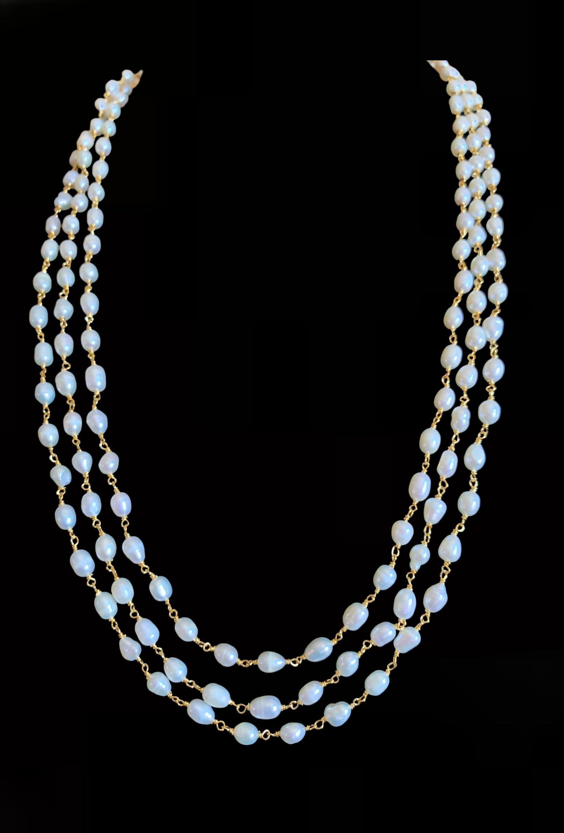 DNS116 Three layered fresh water pearl mala (SHIPS IN 2 WEEKS)
