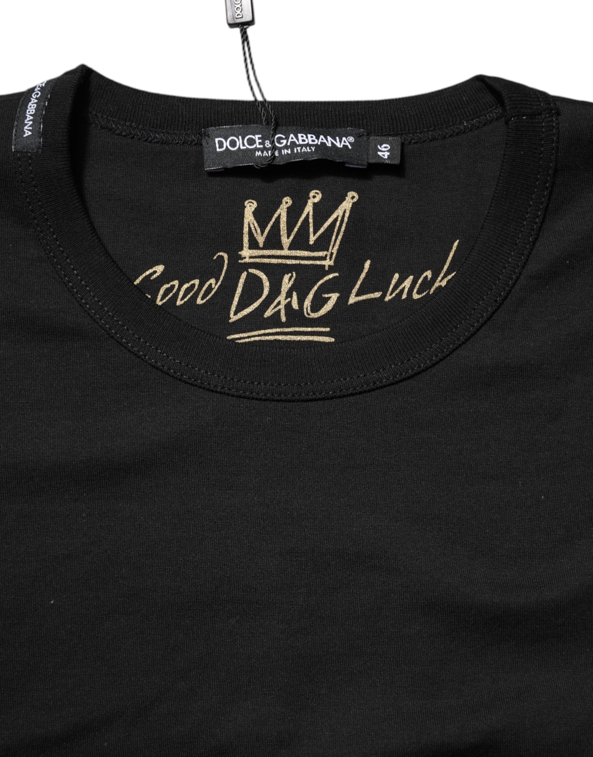 Dolce & Gabbana Black Cotton Goodluck Tee Crew Neck T-shirt