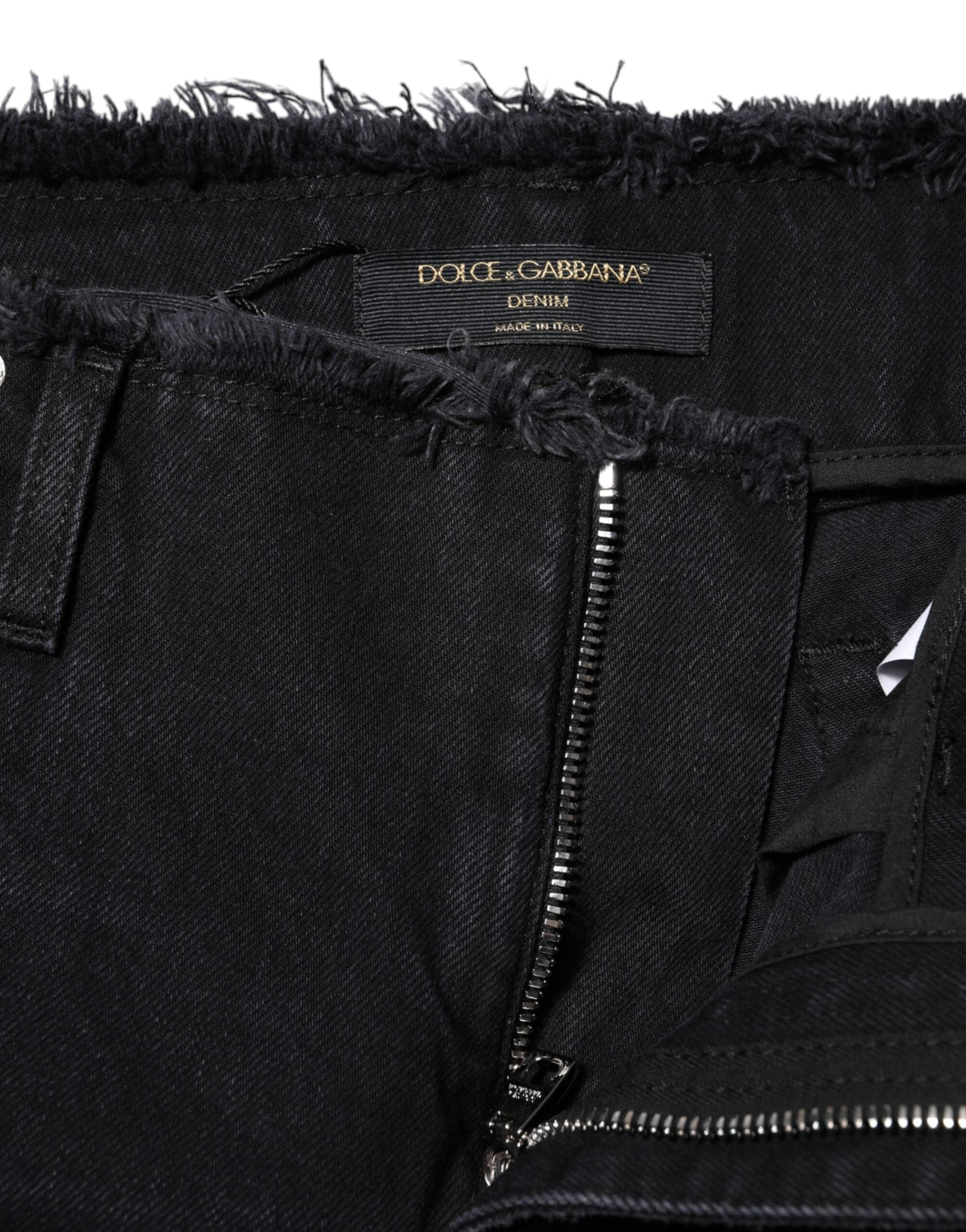Dolce & Gabbana Black Cotton Tattered Mid Waist Denim Jeans