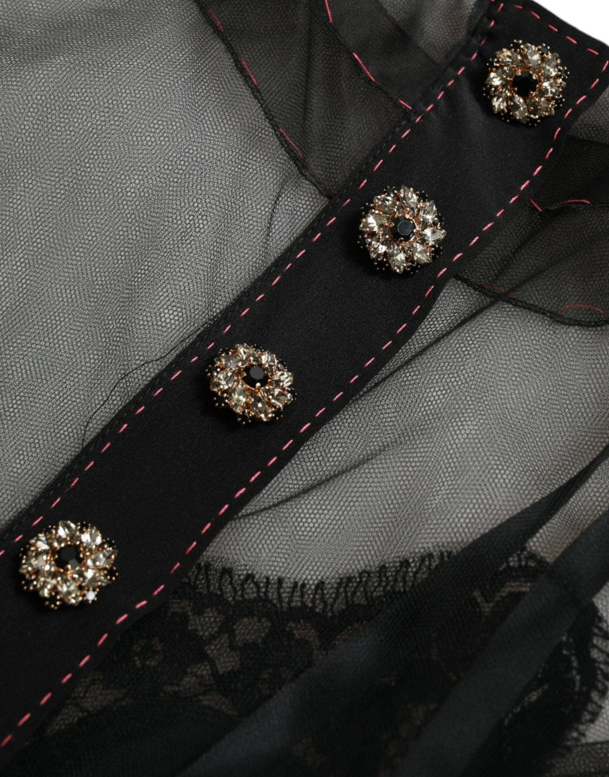 Dolce & Gabbana Black Floral Embroidery Mesh Tulle Gown Dress