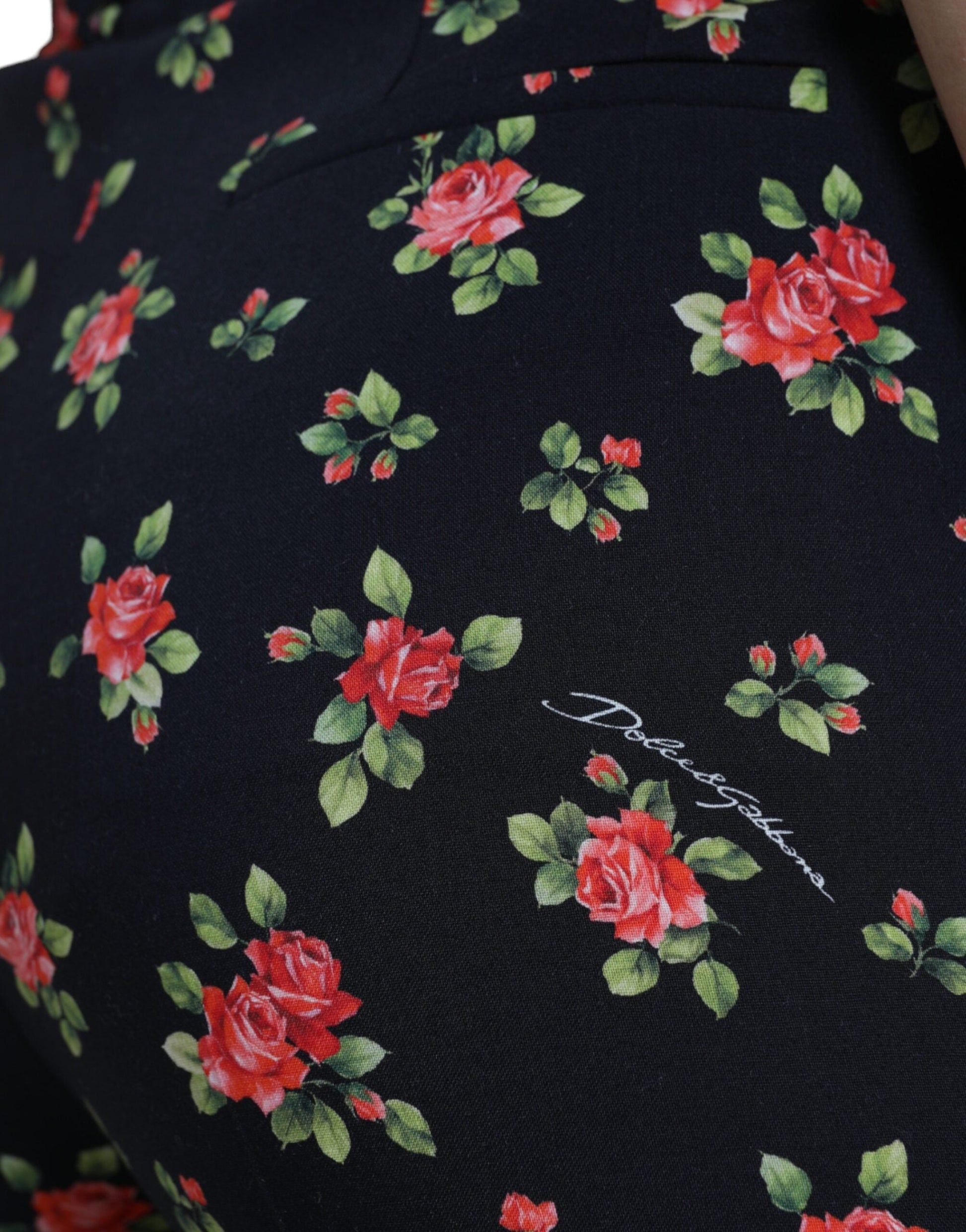 Dolce & Gabbana Black Floral Wool High Waist Tapered Pants