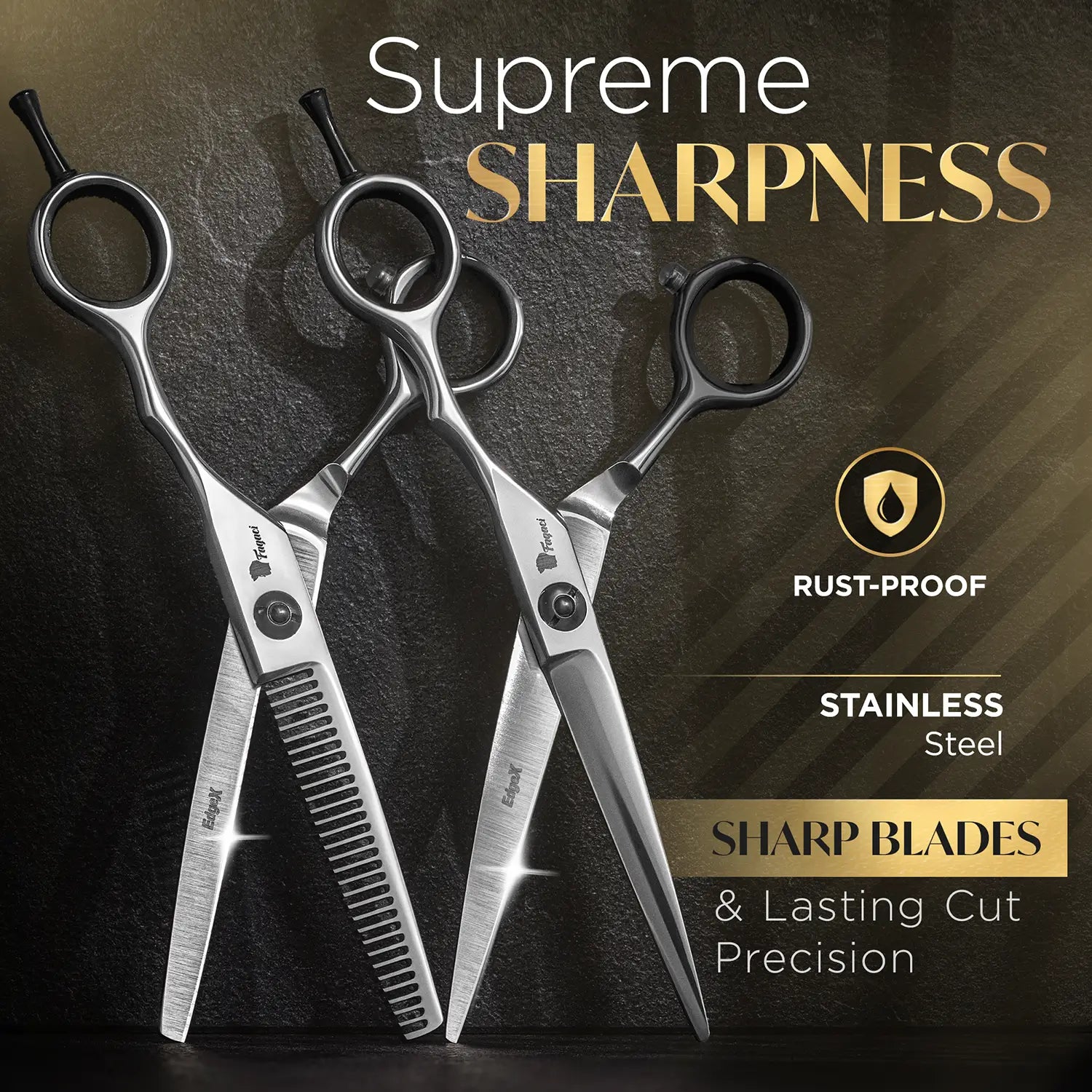 EXTREMELY SHARP - Finely sharpened in multiple stages, our shears and thinning shears offer razor-sharp edges for precise cuts and extended durability, setting a new standard in hair cutting.