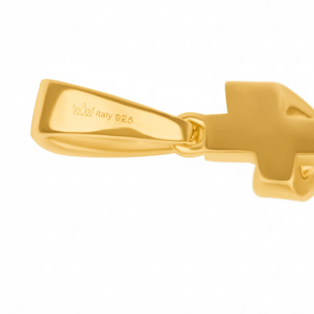 This Jesus Crucifix Cross Pendant is crafted from solid 925 sterling silver and plated with a thick layer of 14K gold for long-lasting shine. Each piece is fully stamped for authenticity and built with a detailed, heavy design that gives it a strong and substantial feel. The craftsmanship highlights sharp lines and a smooth polish for a clean luxury look.