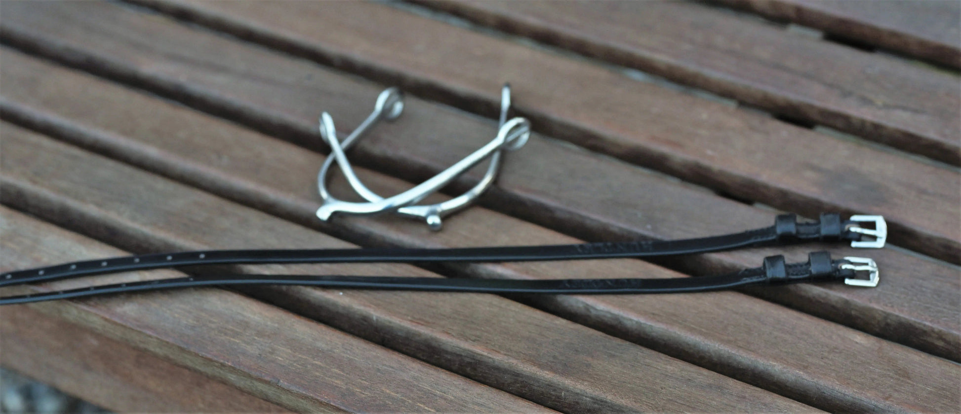 Huntley Equestrian Premium English Leather Spur Straps are constructed of the finest English leather that offers strong, durable leather for everyday riding. Classically designed to be used for every day riding or competitions. The Huntley Spur straps offer double keepers, one fixed keeper to provide a neat and polished look across your riding boot. Stainless steel buckle closure for a secure hold and long lasting hardware. Each strap is 1/2" wide and has a tapered end that is easy to thread through most English spurs. The Huntley Equestrian Spur straps are constructed of the finest materials that will provide a secure, polished look. Multiple Sizes available in 15" Inch Long, 18" Inch Long, and 20" Inch Long. Color available in Black. Sold as a pair.