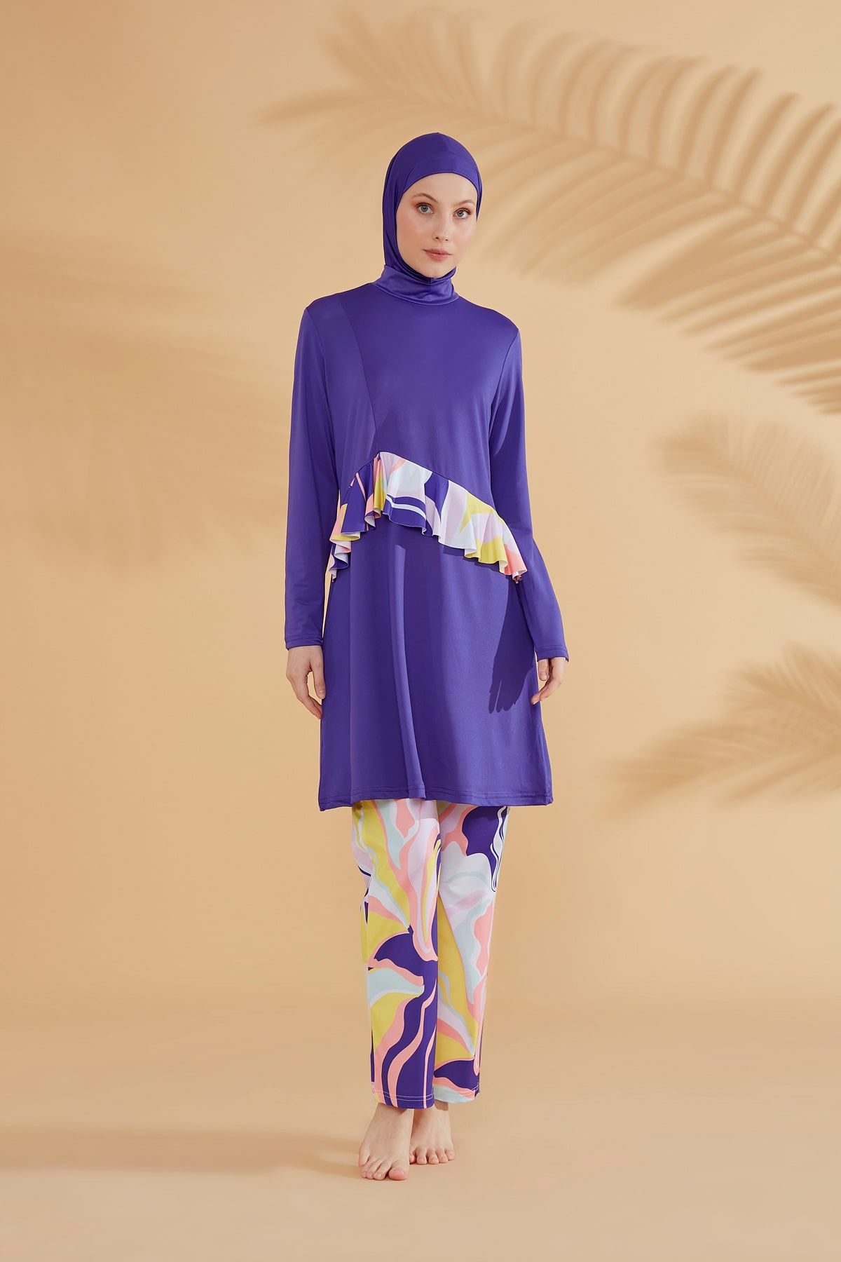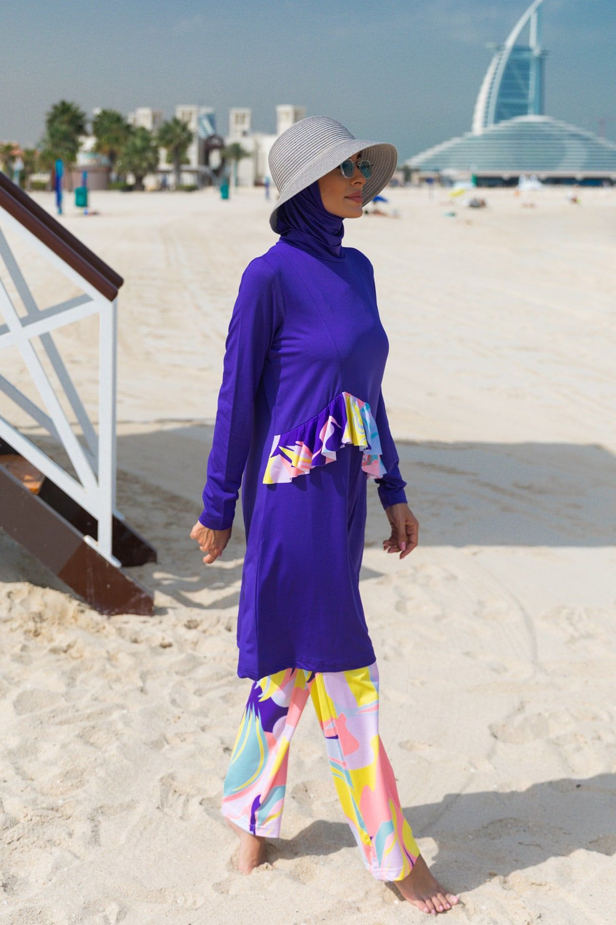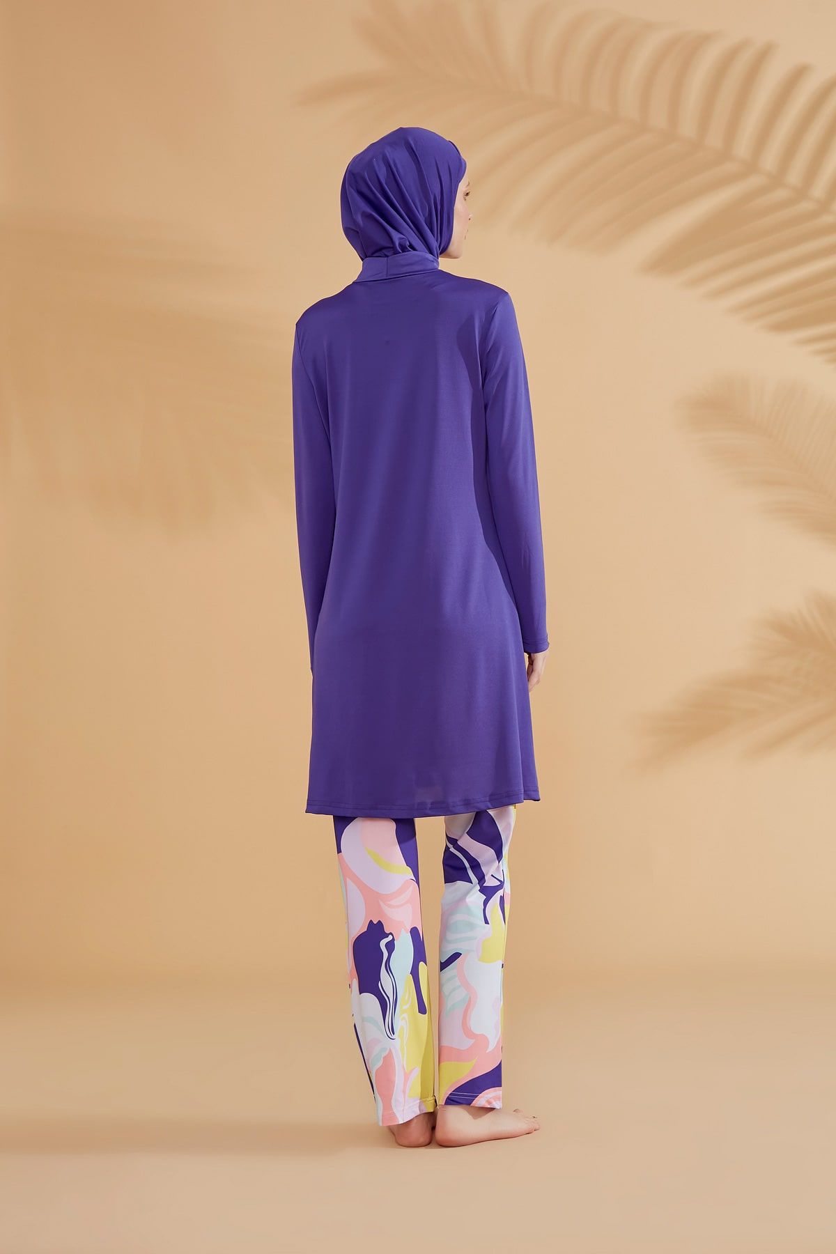 - There are drawstrings on the tunic and tights to prevent your swimsuit from riding up.