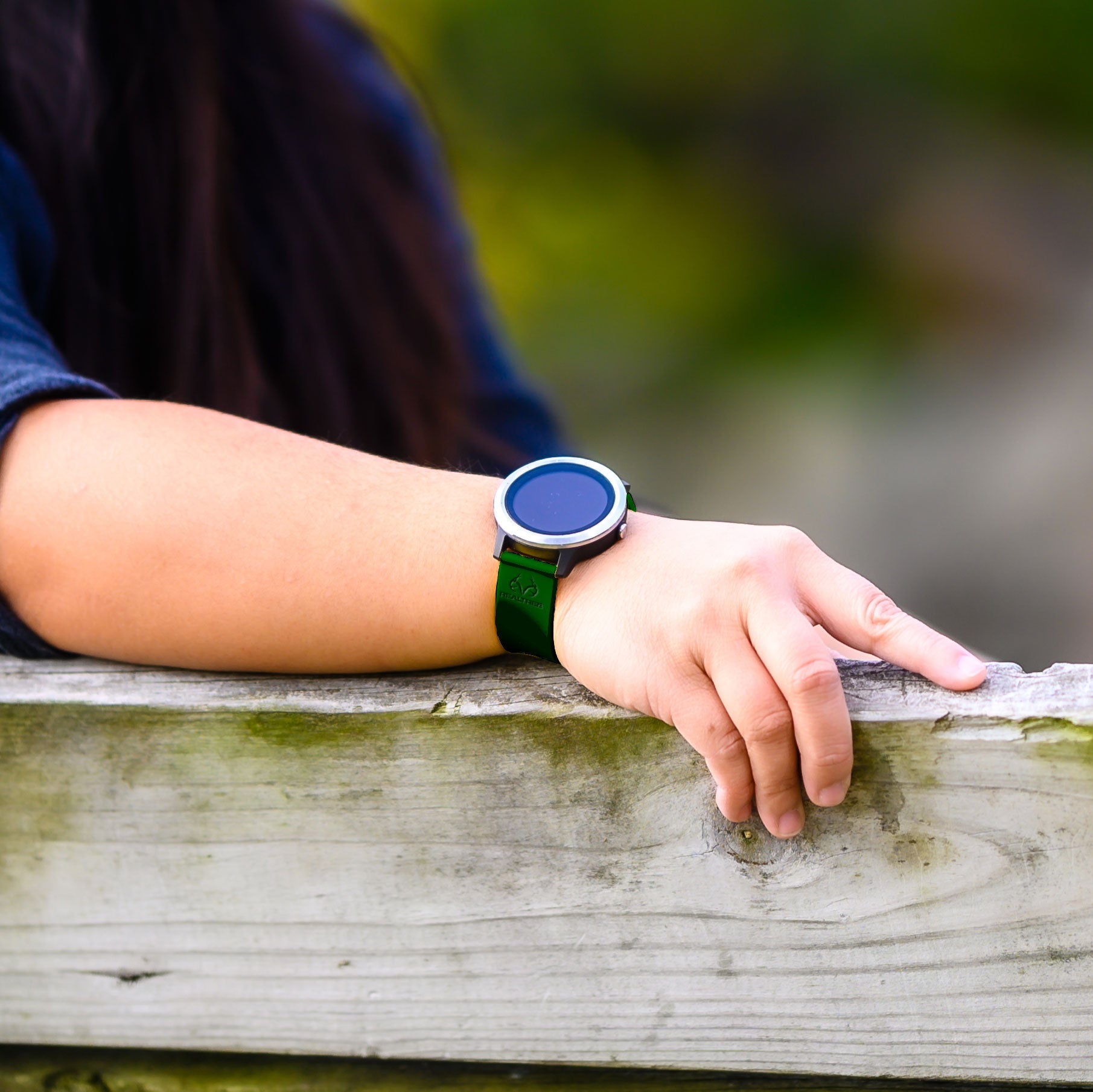 Quick Change watch bands made with durable silicone and stainless steel. The soft flexible silicone provides a smooth comfortable feel and the patented, dual pin and tuck closure, provides added security for today's active lifestyle. WATCH NOT INCLUDED.