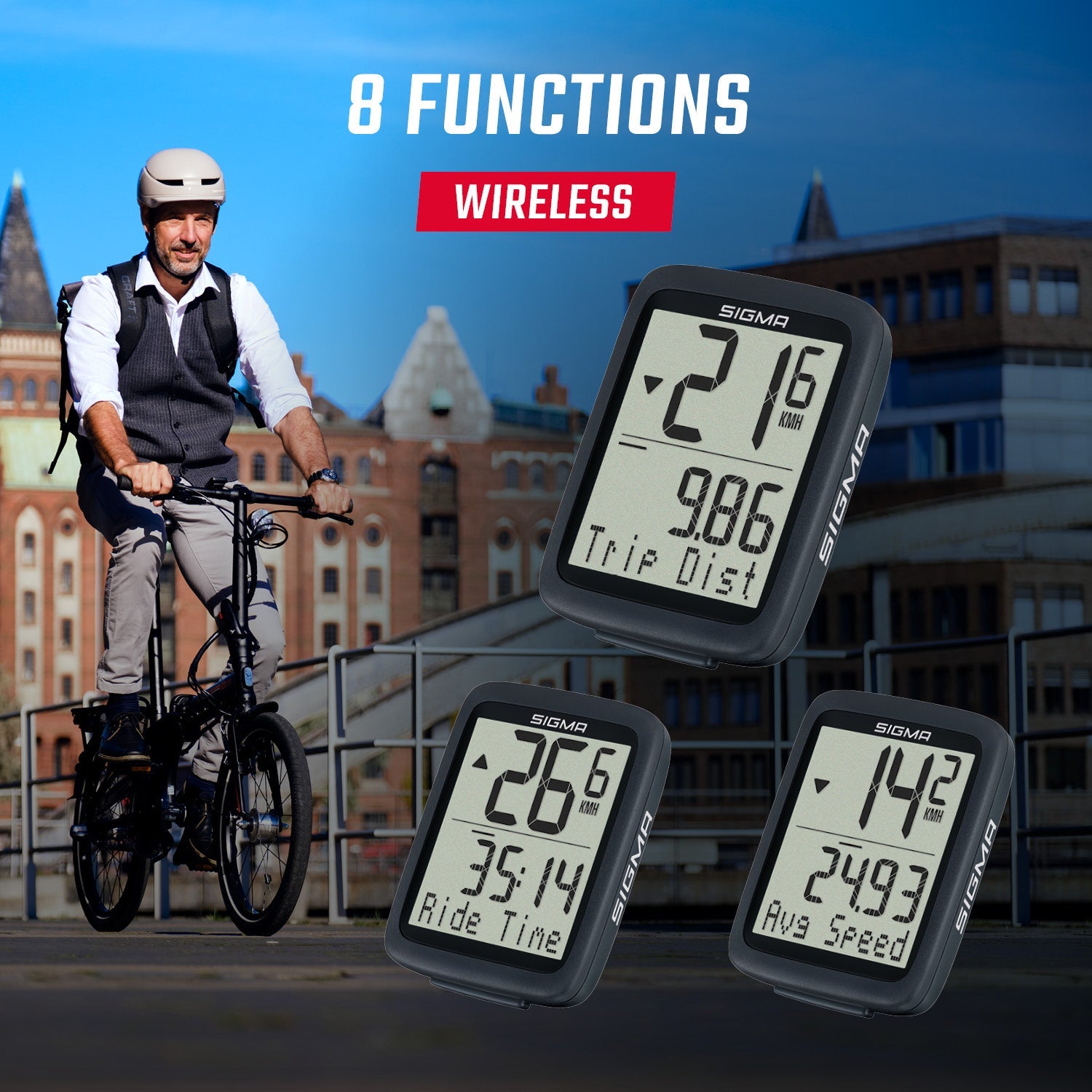 8 FUNCTIONS w/ SPEED COMPARISON AND MULTI DAY TOUR TRACKING: The BC 8.0 WL features the eight essential functions: trip distance, speed, total distance, trip time, clock, total trip time, average speed, and average speed comparison. The BC 8.0 WL measures trip time and distance for long bike tours. This makes it convenient to read the entire distance of a multi-day biking trip. Full text display can be in English, German, French, Italian, Spanish, Dutch, or Polish.