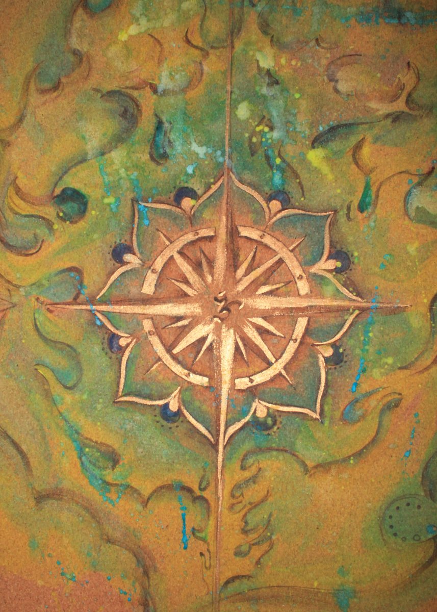 The compass knows the way. Mandalas for concentration, fire to ignite the spirit and the compass to align us on and off the mat. I wanted to create a design that would represent that burning desire to follow our heart.