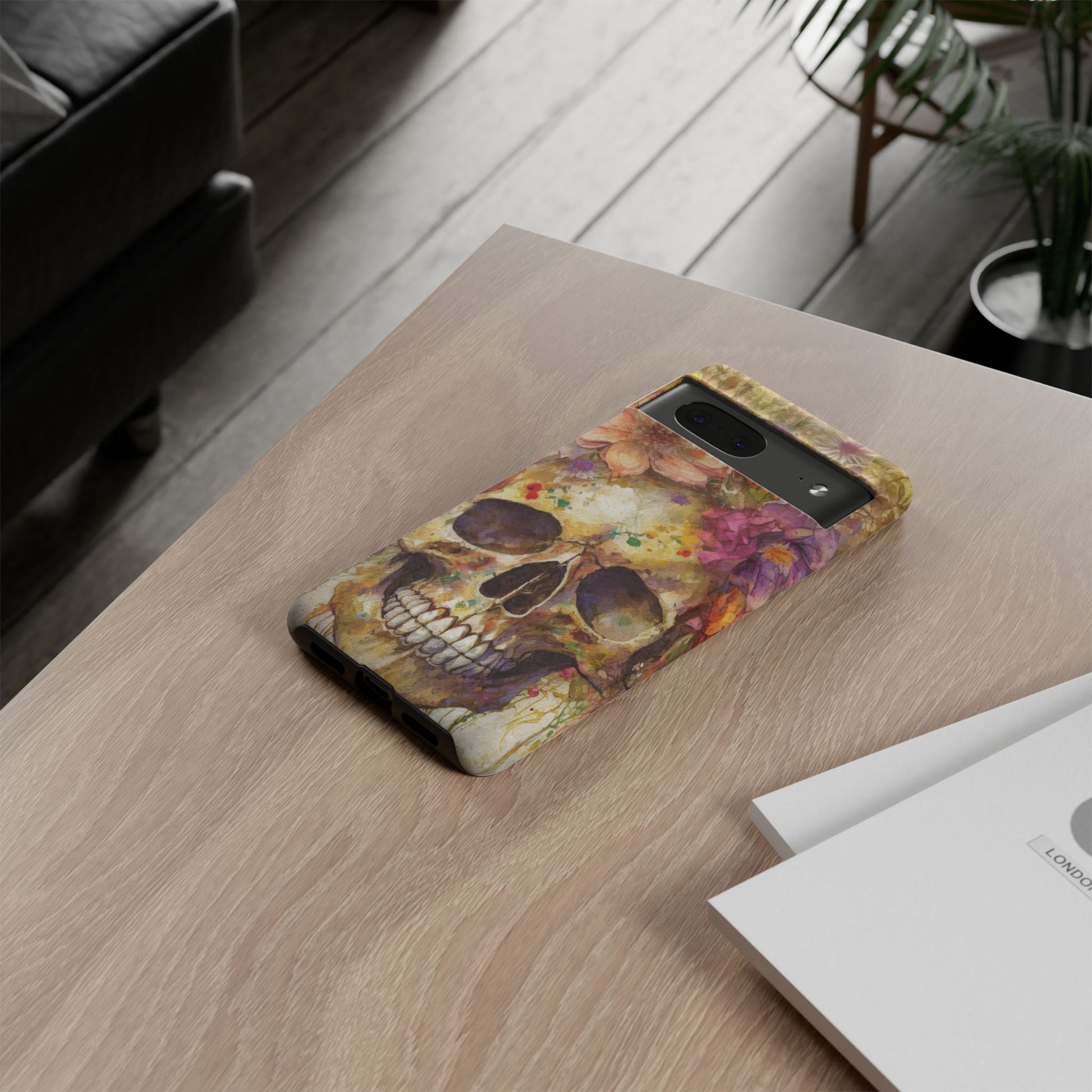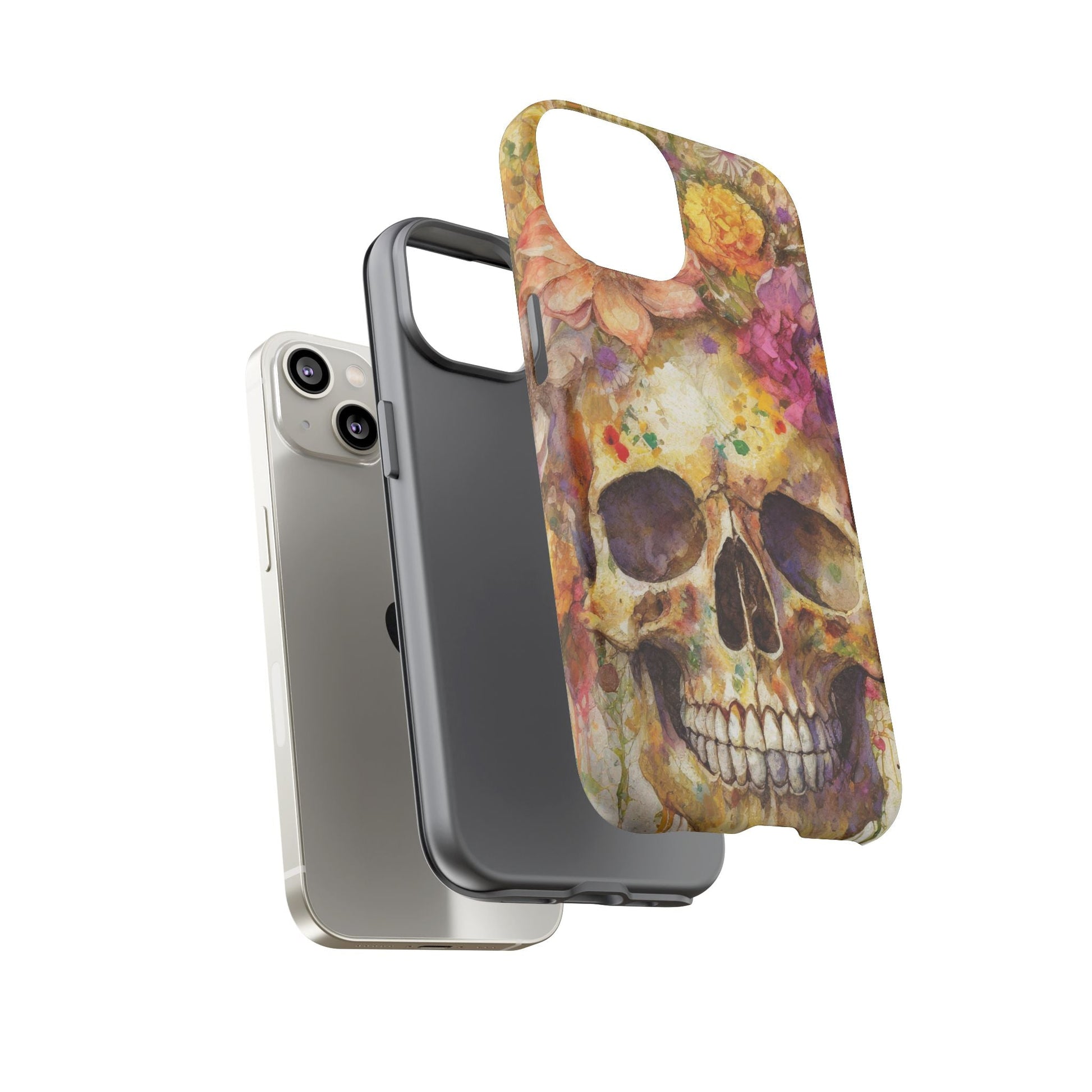 Embrace adventure and stand out with our bold and daring phone cases that combine practicality with artistic expression. This resilient phone case showcases a one-of-a-kind design featuring vibrant floral details contrasted by a bold skull pattern. It perfectly captures the essence of unconventional style and everyday functionality, making it the ultimate accessory for risk-takers. Ideal for those who appreciate unique accessories and art, this product is particularly fitting for occasions such as Día de los Muertos, Halloween, and other celebrations of life and memory. Whether you're out with friends, attending a festival, or simply going about your day, this phone case adds a touch of personal flair to your device. Designed for adults who value durability and fashion, our phone case offers both protection and a statement-making piece.