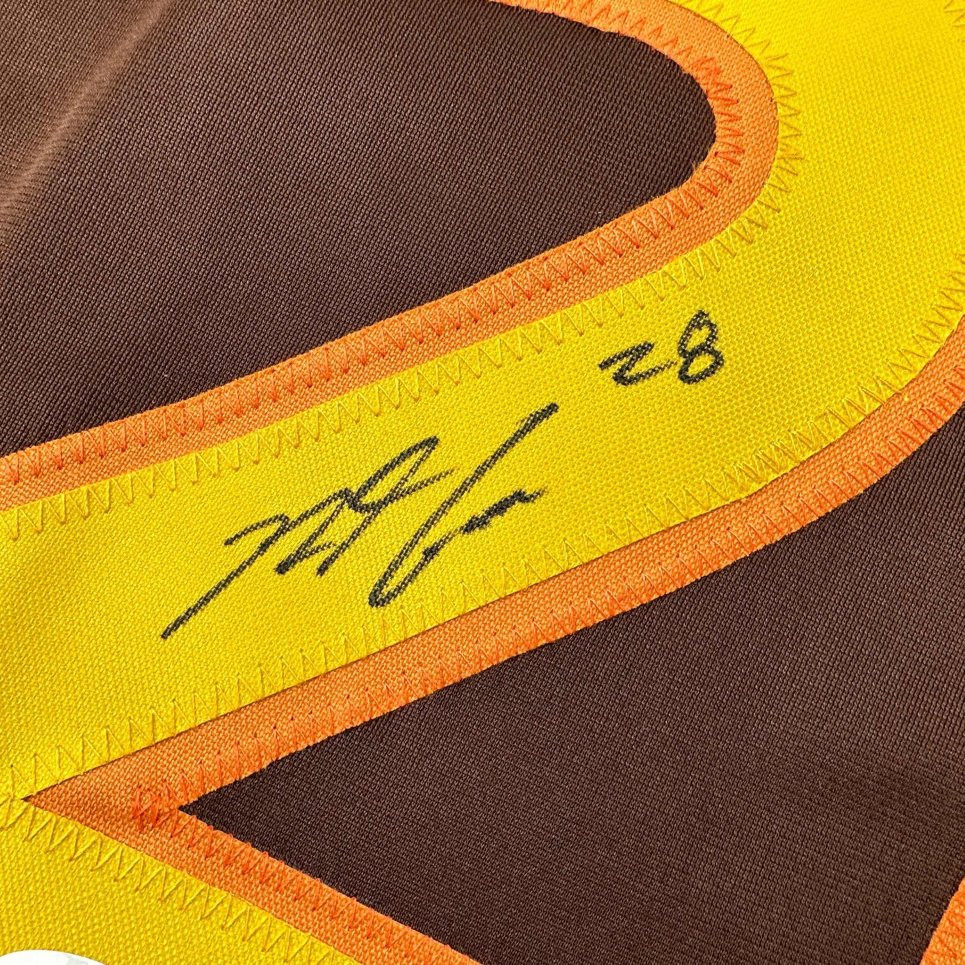 Jersey has no brand names or logos. This is a custom jersey and was not manufactured by or in any manner associated with any professional sports league or manufacturer. This custom jersey carries no professional sports league designation. The item is intended to be an autographed collectible. The custom jersey displays the name and number of the player. This item in no way is affiliated with or connected to any professional sports organization. Size is XL.