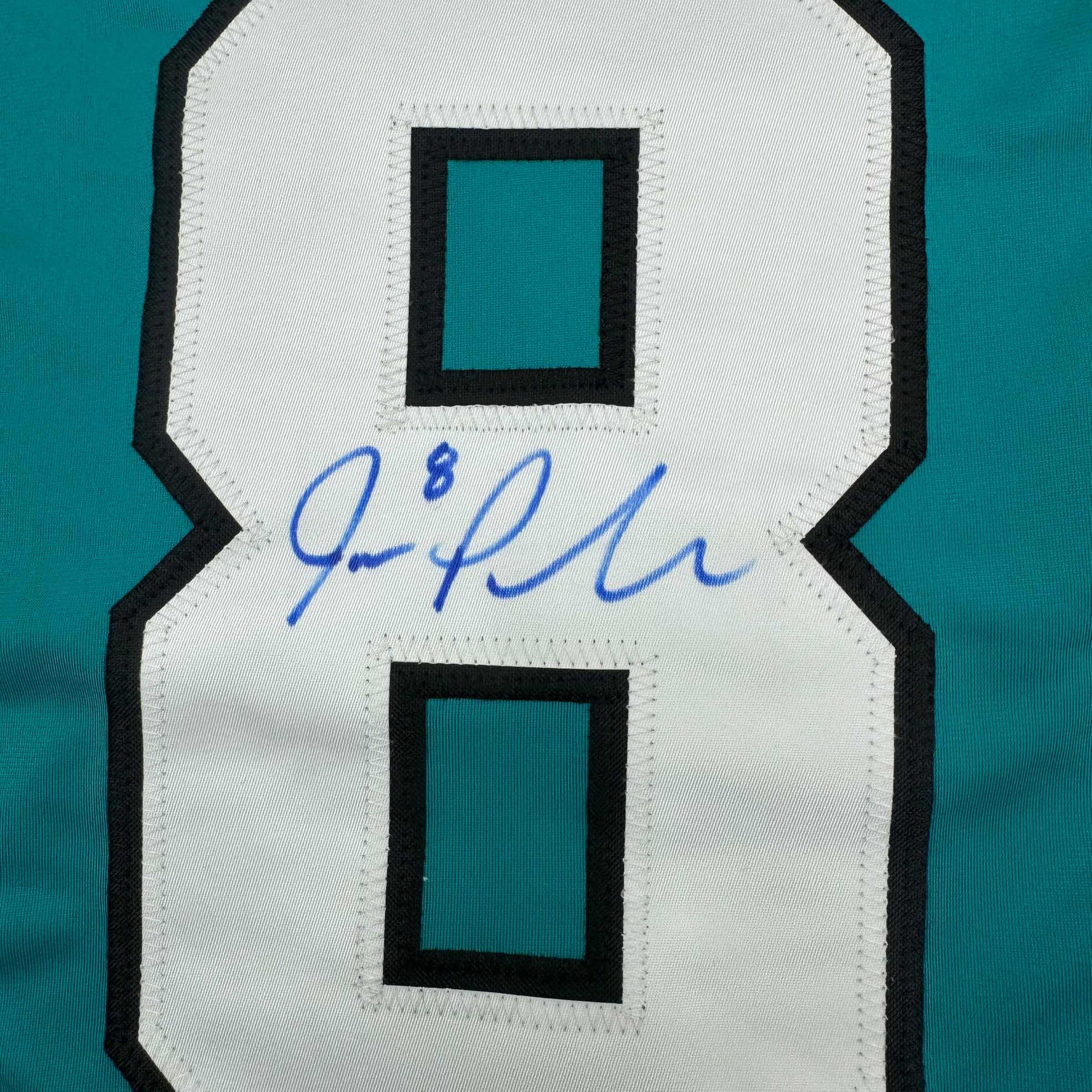 Framed Autographed/Signed Joe Pavelski 35x39 San Jose Teal Hockey Jersey JSA COA