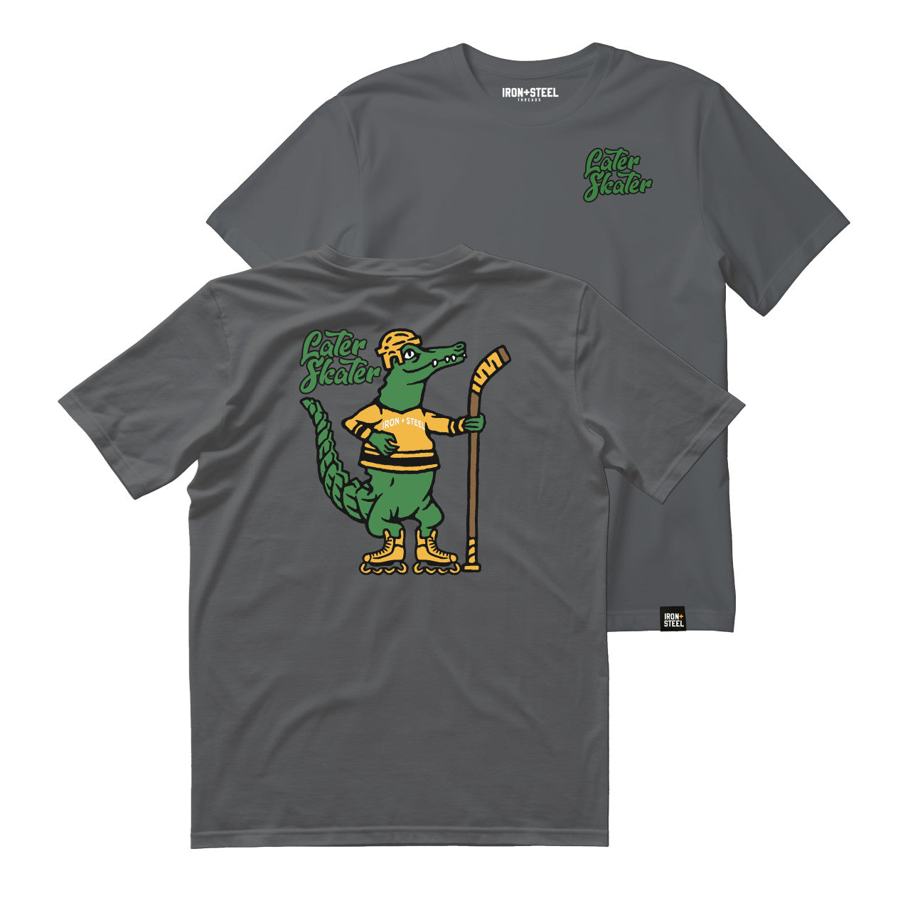 Our Later Skater Alligator Hockey T-Shirt features an alligator with a hockey stick and roller skates, this super soft 100% cotton tee is perfect for fans of inline hockey.