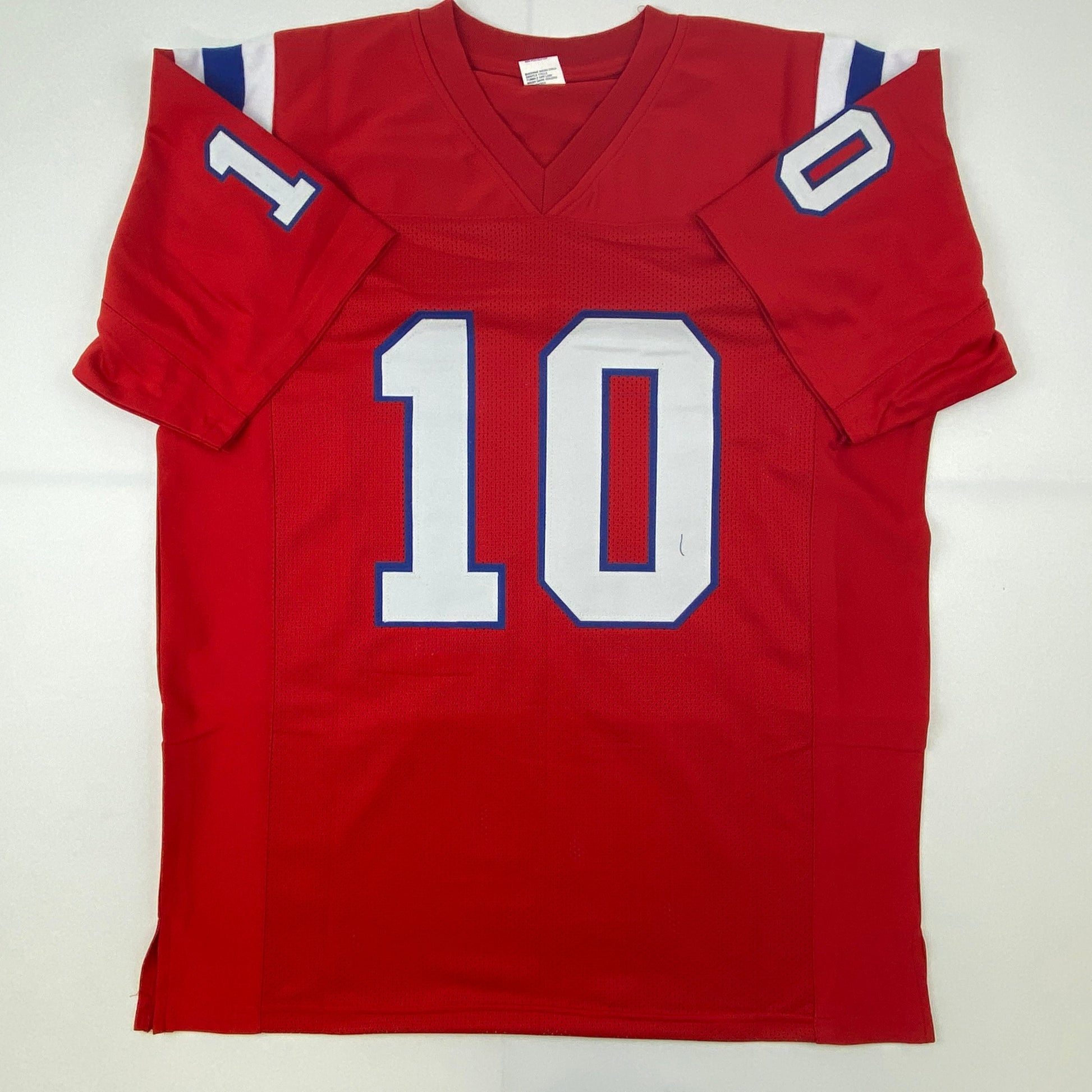 Autographed/Signed Mac Jones New England Red Football Jersey Beckett BAS COA