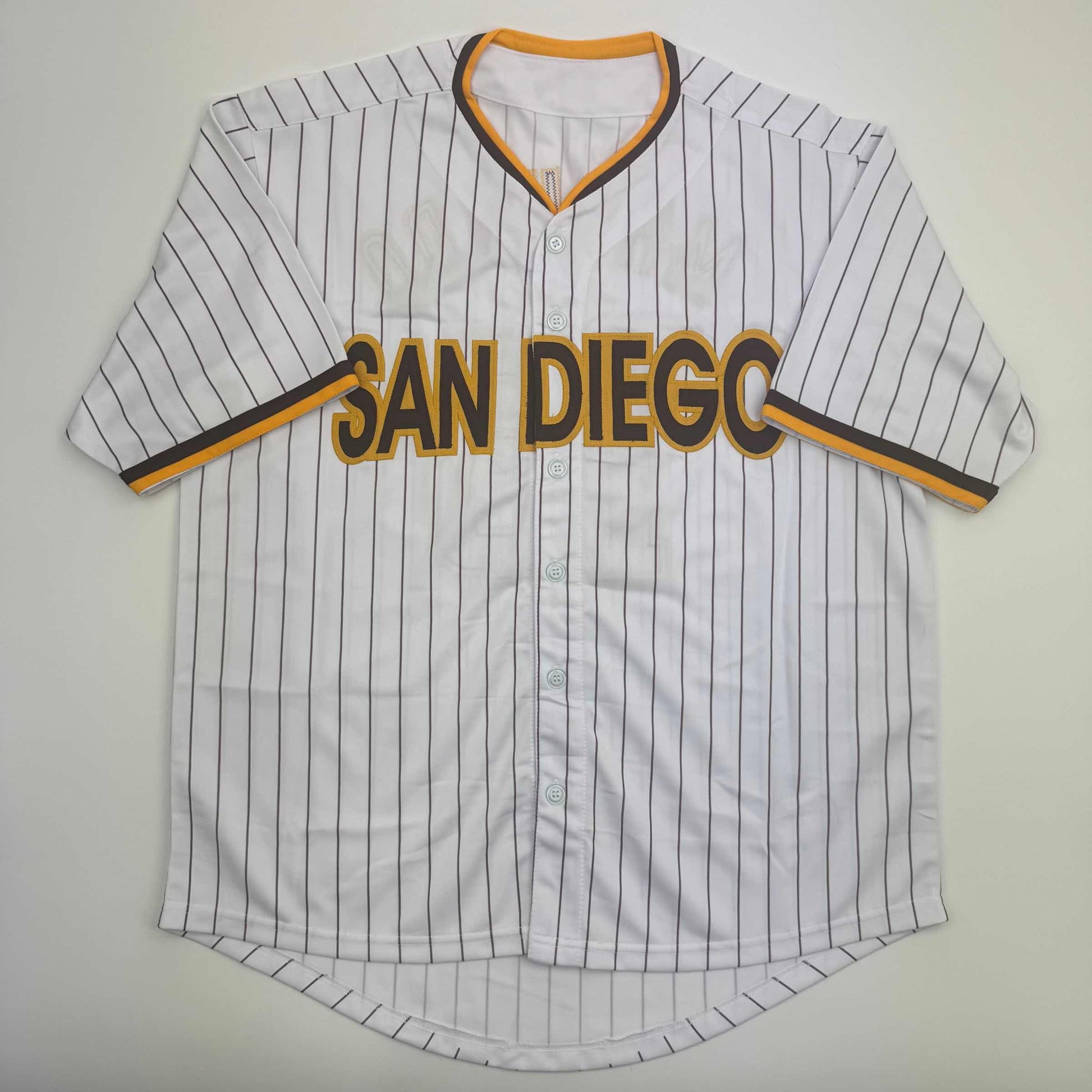 Jersey has no brand names or logos. This is a custom jersey and was not manufactured by or in any manner associated with any professional sports league or manufacturer. This custom jersey carries no professional sports league designation. The item is intended to be an autographed collectible. The custom jersey displays the name and number of the player. This item in no way is affiliated with or connected to any professional sports organization. Size is XL.