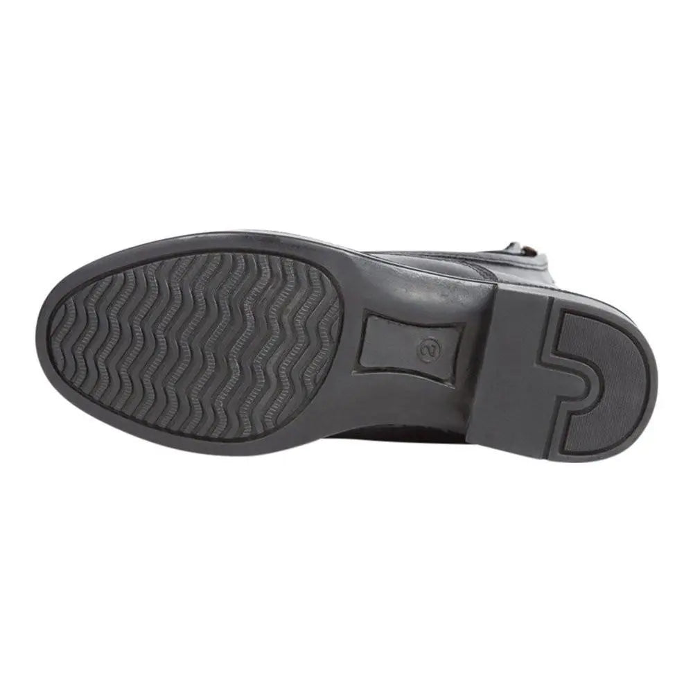 Horse Riding Boots offers a beautiful, classic look with an easy-access side zipper. The durable YKK brass zipper allows for quick on-and-off wearability. The boot is premium exterior leather with a mesh interior lining to wick away moisture. Dual stretch elastic at the top provides comfort and flexibility. A durable rubber outsole supports all-day riding and works around the barn. Paddock boots are finished with an elegant punch toe that adds a polished look and spur rest.