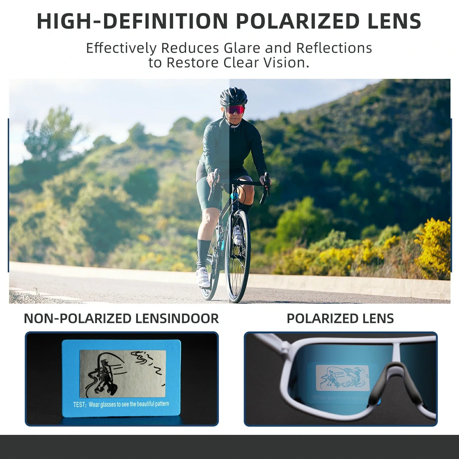 - Clear Polarized Lens: The polarized lenses filter out reflected light and glare from surfaces like roads, water, snow, and glass, reducing potential safety hazards caused by unclear vision.