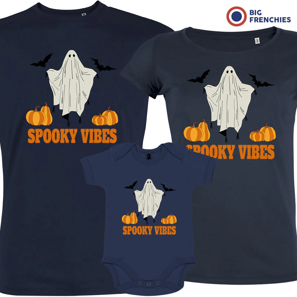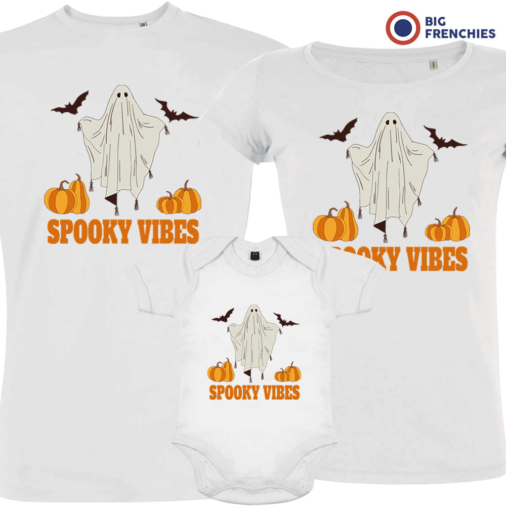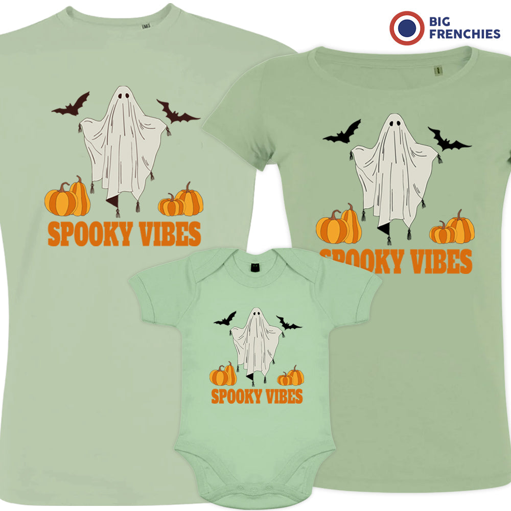 Spooky Vibes With Pumpkin And Ghost Matching Organic Cotton Family Set (Set of 3)