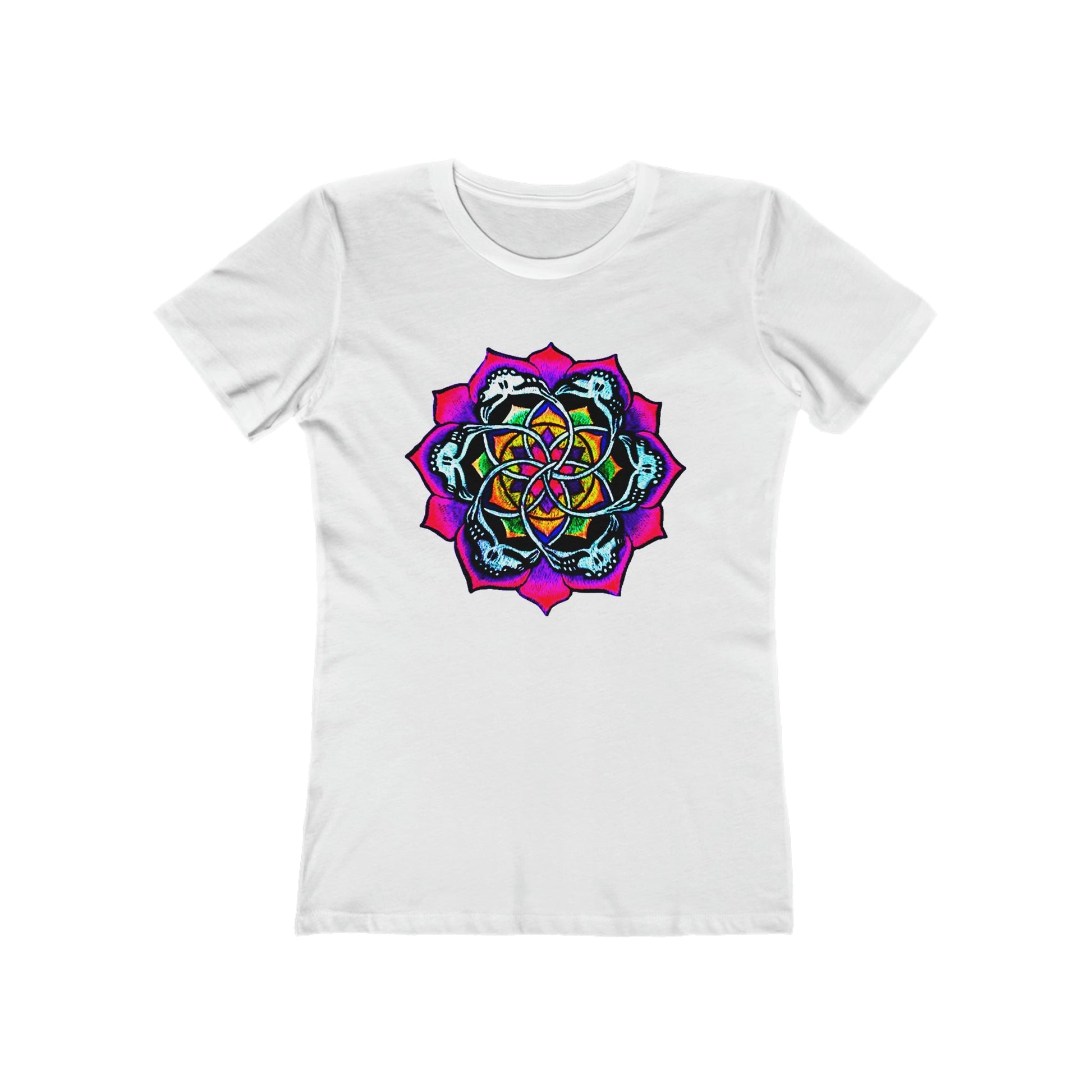 This flattering cut classic tee provides a fashionably casual look. A signature classic t-shirt style done exceptionally well. Not to be confused with your everyday t-shirt. The cut & fabric on this tee is high-end. Embellished with original art that enlightens any room.