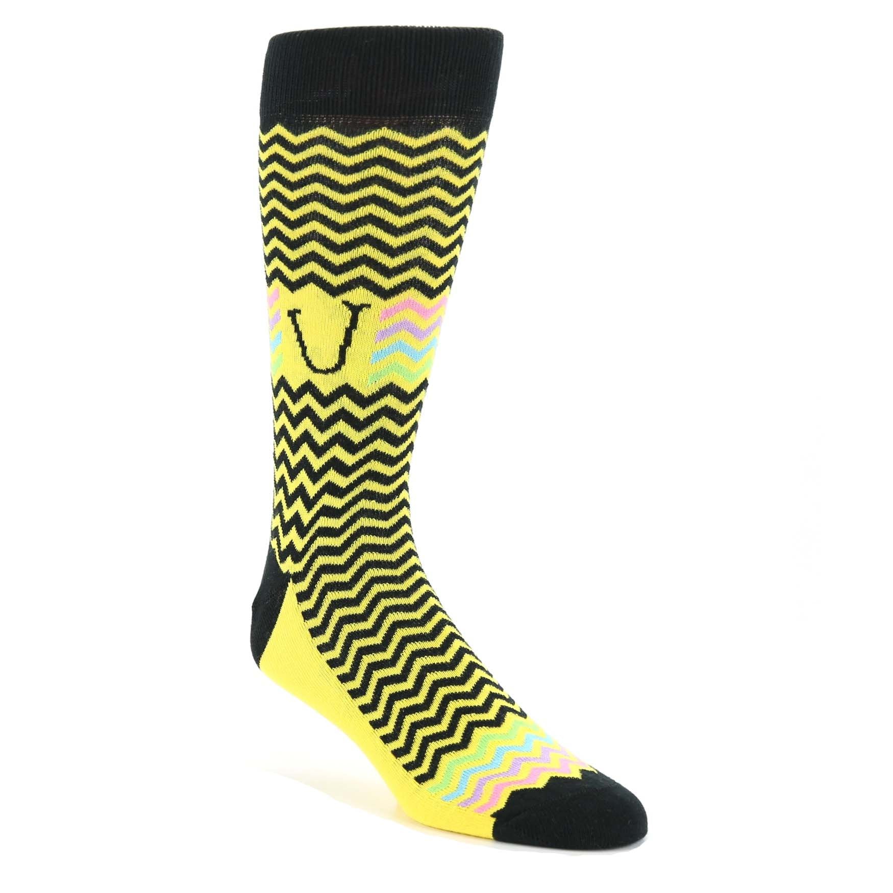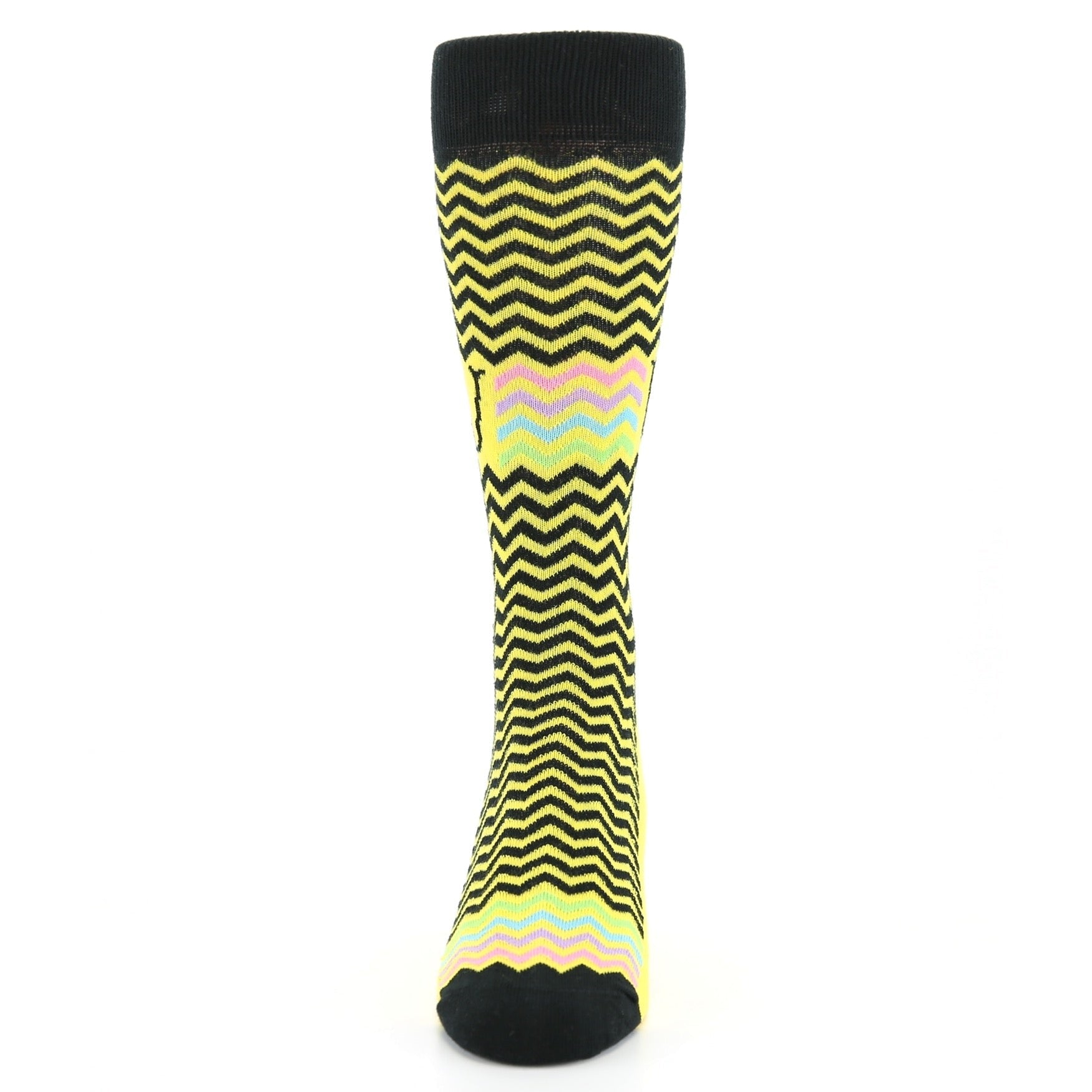 Get your grin on in these chevron stripes multicolored laughfest socks! These men's dress length socks represent the comedians you love, and show that you support the comedic lifestyle.