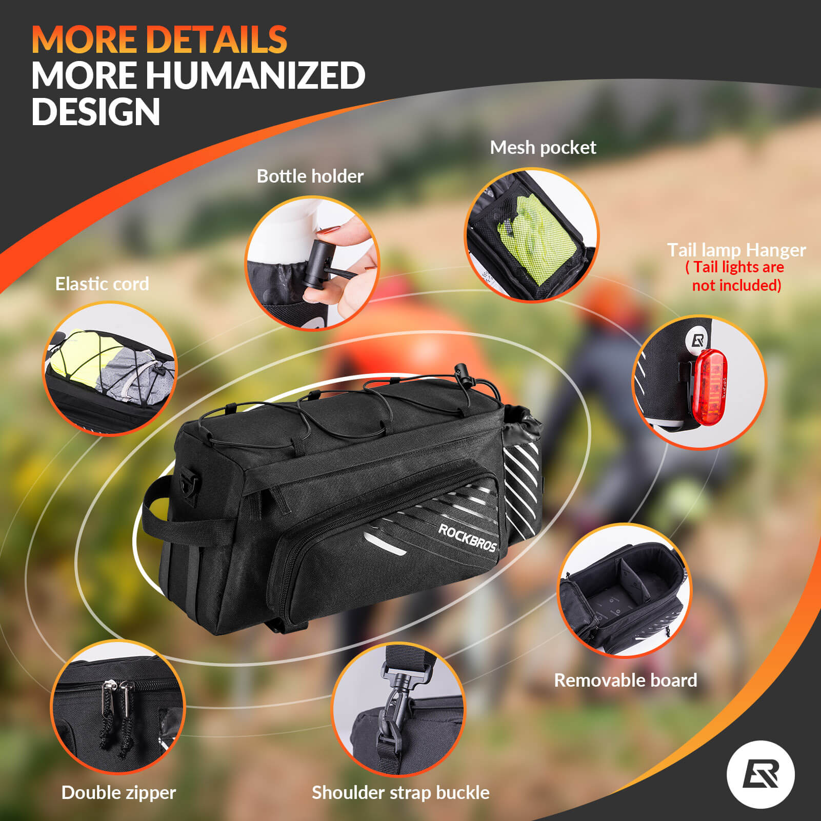Equipped with reflective straps for enhanced visibility at night and a rear strap designed to attach a taillight, helping to keep you safe during night rides. -