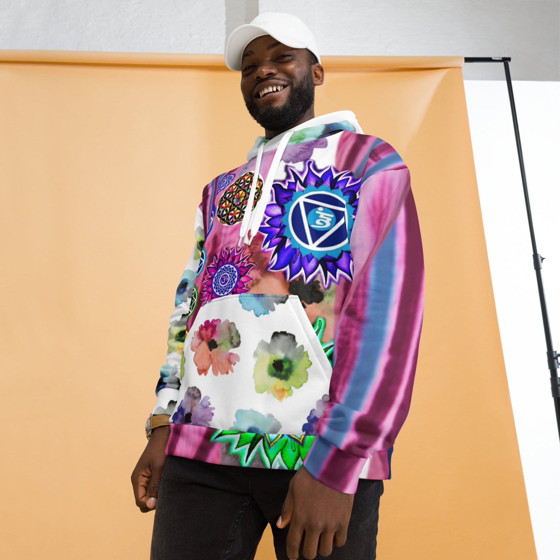 Adorned with a dazzling flower print inspired by the mesmerizing Flower of Life and sacred geometry, this hoodie is a true work of art. The intricate patterns not only radiate beauty but also hold a deeper meaning – they're a reminder of the blissful benefits of having your chakras aligned.