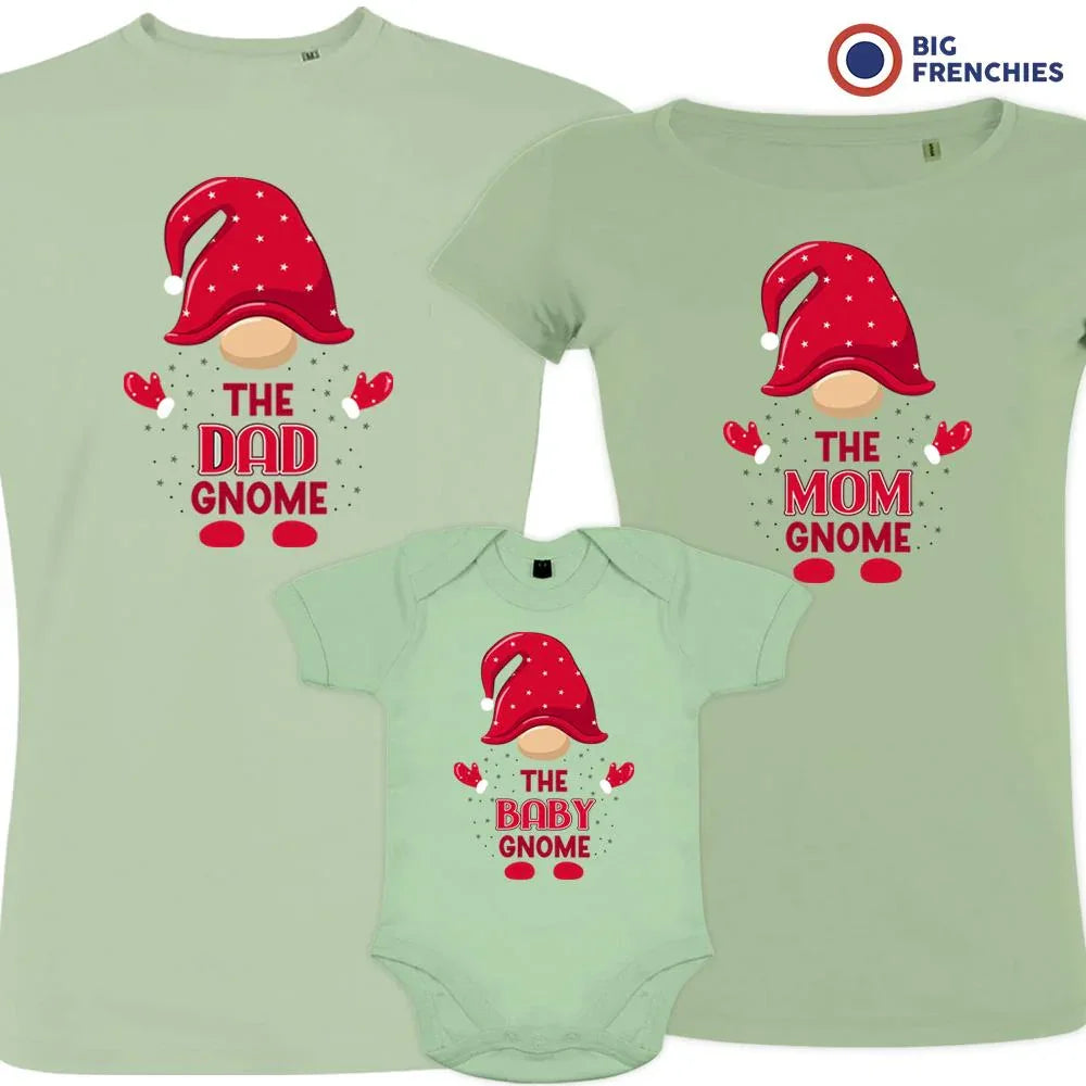 The Dad Mom & Baby Gnome Christmas Matching Family Organic Tees (Set of 3)