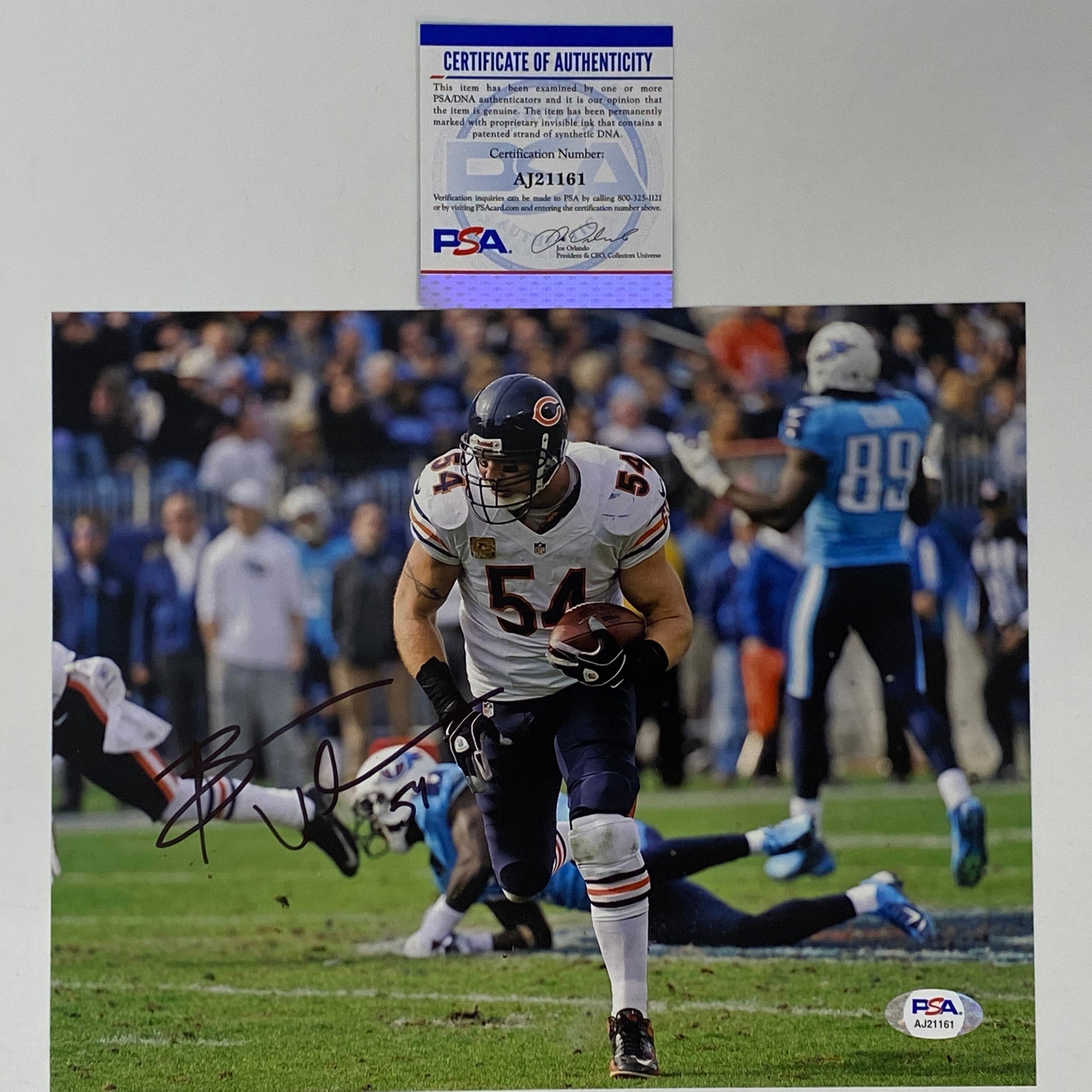 Autographed/Signed Brian Urlacher Chicago Bears 8x10 Football Photo PSA/DNA COA