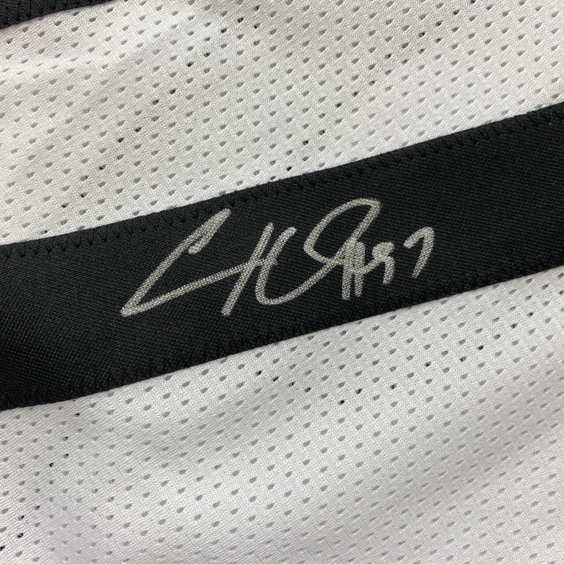 Jersey has no brand names or logos. This is a custom jersey and was not manufactured by or in any manner associated with any professional sports league or manufacturer. This custom jersey carries no professional sports league designation. The item is intended to be an autographed collectible. The custom jersey displays the name and number of the player. This item in no way is affiliated with or connected to any professional sports organization. Size is XL.